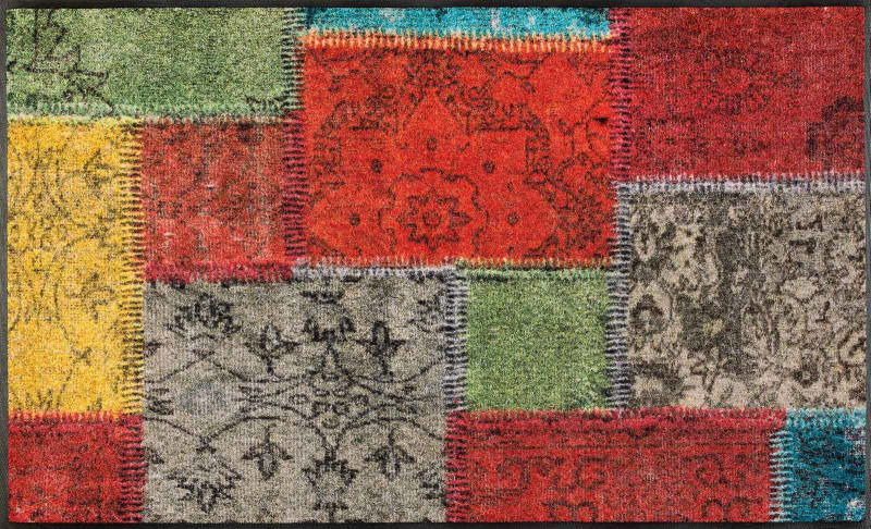 Klassische Fußmatte "Vintage Patches" von Kleen-Tex im Retro-Stil
