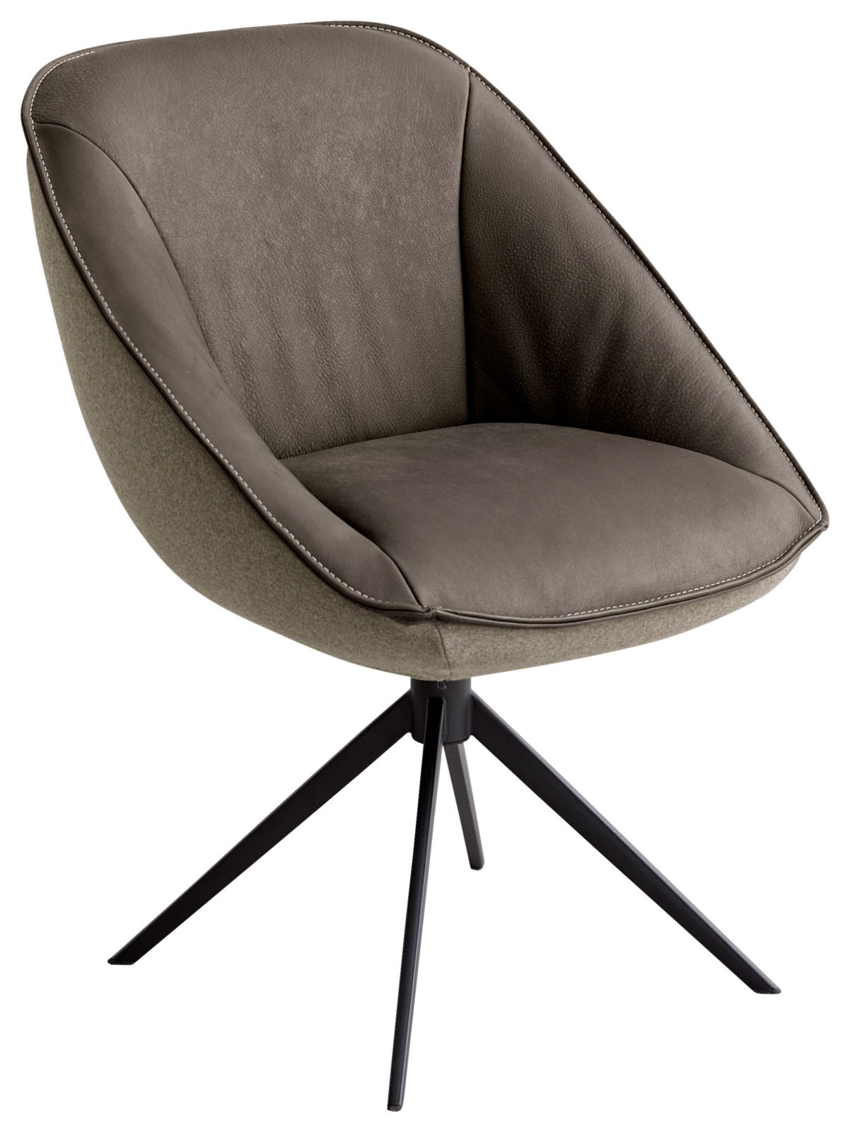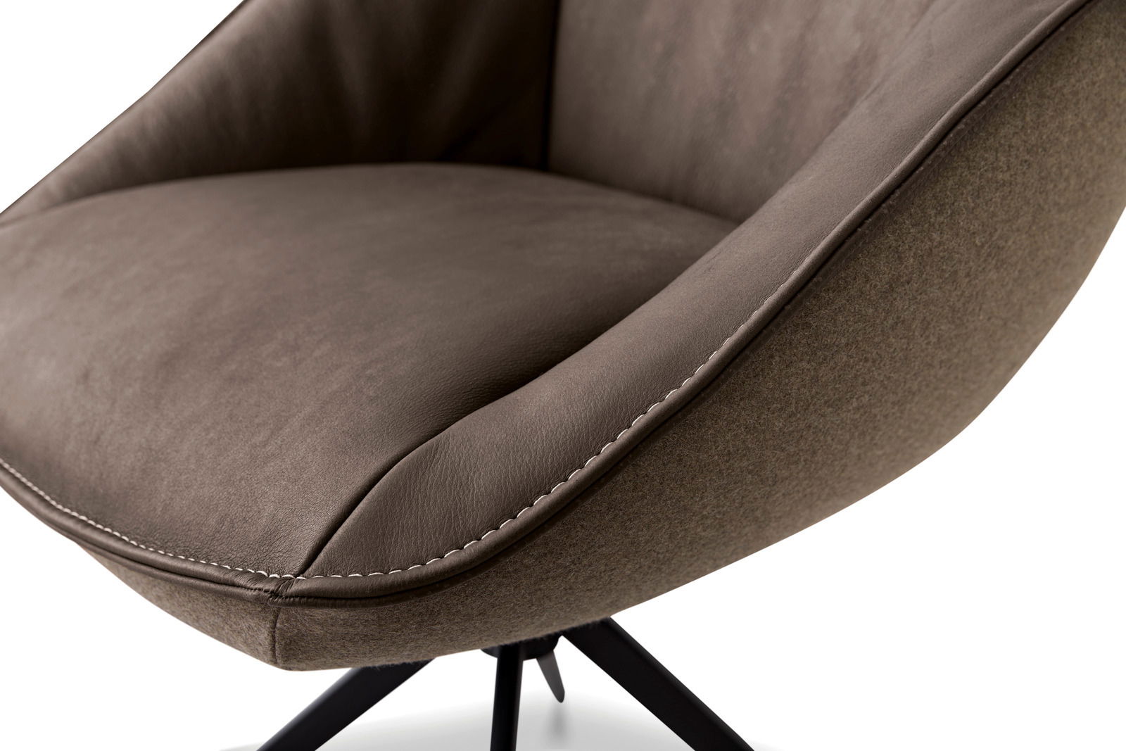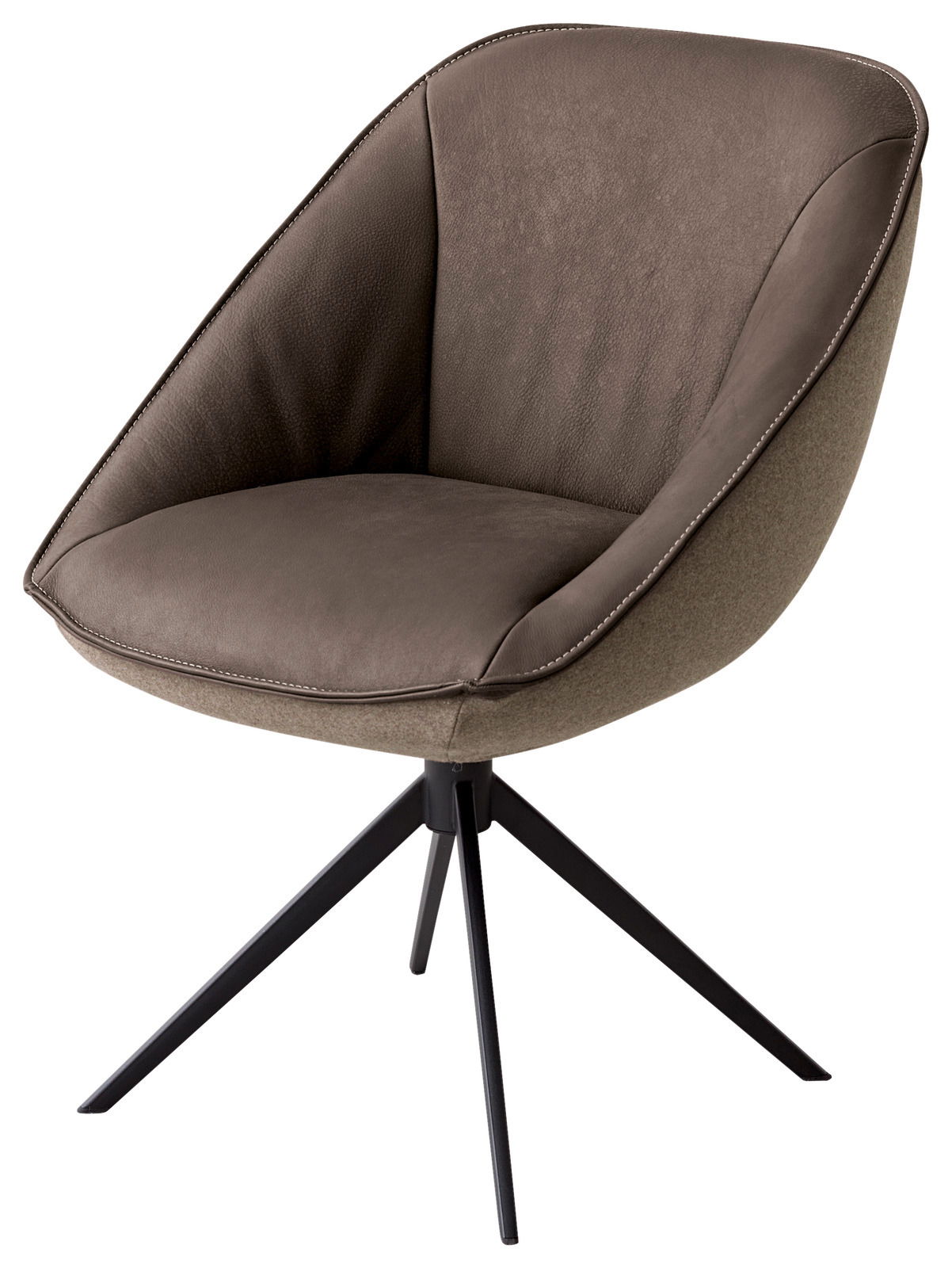 Der Koinor Armlehnstuhl vereint modernes Design mit höchstem Komfort. Diese stilvolle Sitzgelegenheit punktet mit einem Bezug aus hochwertigem Leder in der Farbe Schoko, ergänzt durch Stoffelemente in Loden. Der Stuhl ist mit einem eleganten schwarzen Metallschemel ausgestattet, der in modernem Schwarz matt gehalten ist. Die Sitzhöhe beträgt 51 cm und bietet eine ideale Positionierung für alle, die Wert auf Bequemlichkeit legen. Mit einer Sitztiefe von 44 cm und einer Sitzbreite von 45 cm ist der Stuhl perfekt dimensioniert, um in jedem modernen Interieur zum Hingucker zu werden. Der Koinor Armlehnstuhl ist zudem drehbar und bis zu 120 kg belastbar, was ihn zu einer robusten Wahl für den täglichen Gebrauch macht.