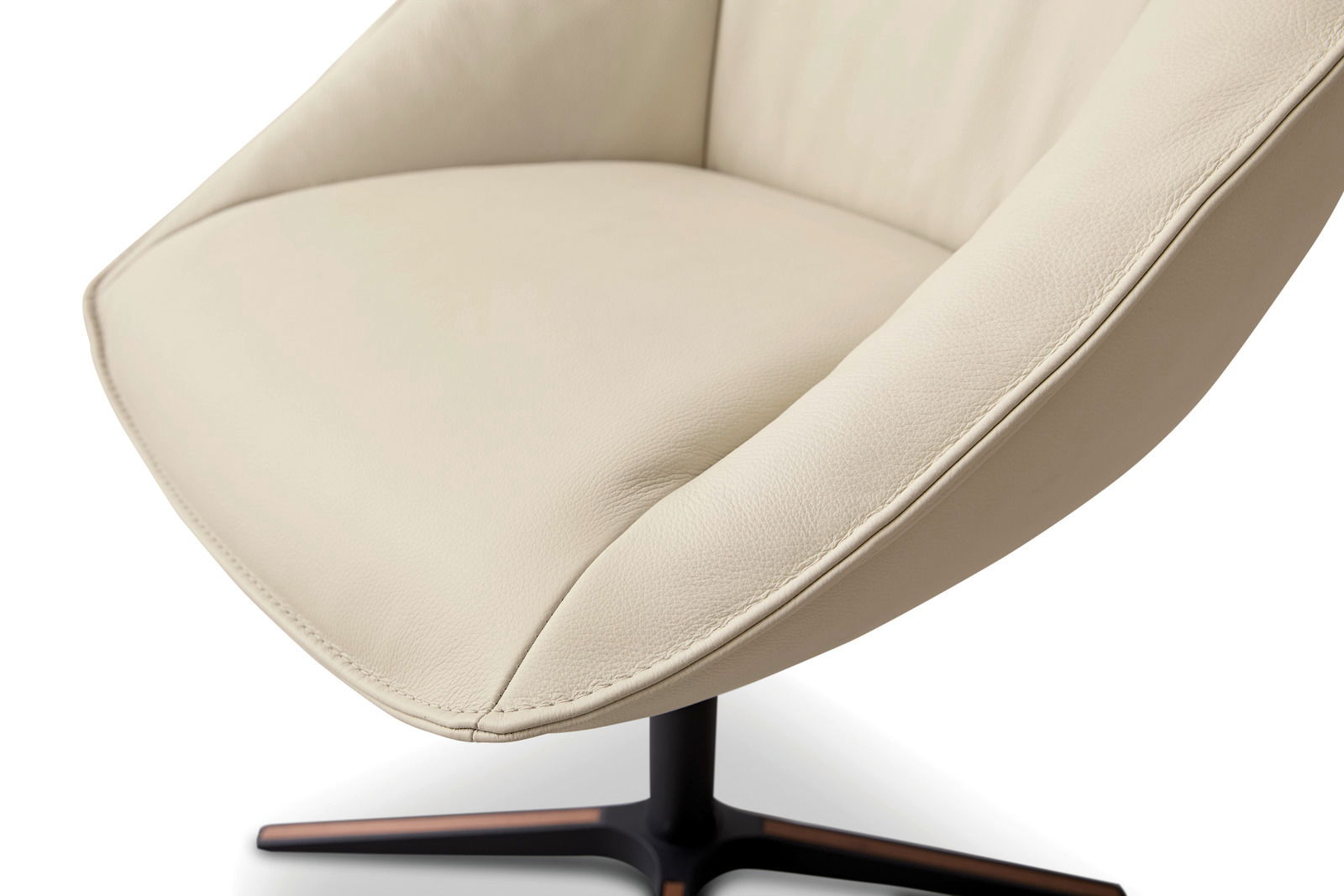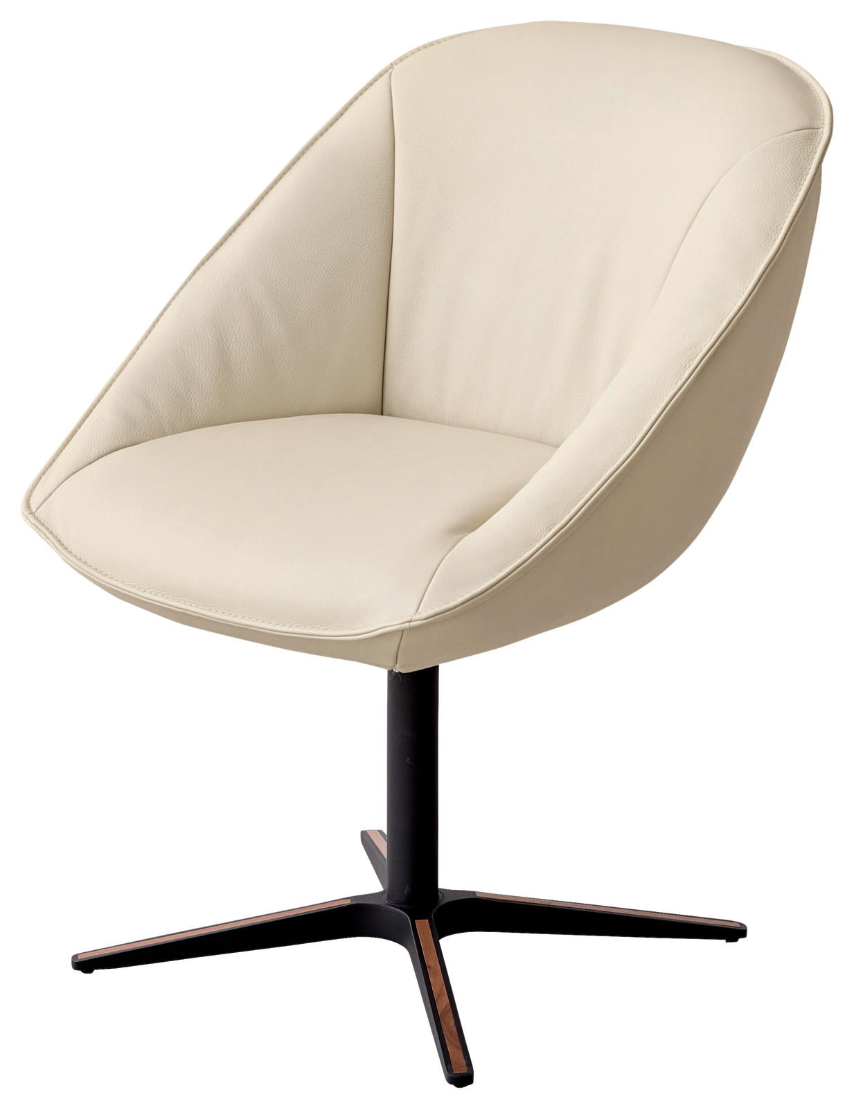 Der Koinor Armlehnstuhl ist die perfekte Verbindung aus modernem Stil und herausragendem Komfort. Der Bezug aus hochwertigem Leder Bonita stella in der eleganten Hauptfarbe Creme verleiht diesem Stuhl eine luxuriöse Ausstrahlung, die jeden Raum aufwertet. Mit einer Sitzhöhe von 51 cm und einer Sitztiefe von 46 cm bietet der Stuhl optimalen Sitzkomfort. Die Sitzbreite von 40 cm gewährleistet angenehme Freiräume, während die drehbare Funktion zusätzliche Flexibilität bietet. Der stabile Metallfuß in Schwarz sorgt nicht nur für einen stilvollen Kontrast, sondern auch für eine beeindruckende Belastbarkeit von bis zu 120 kg.