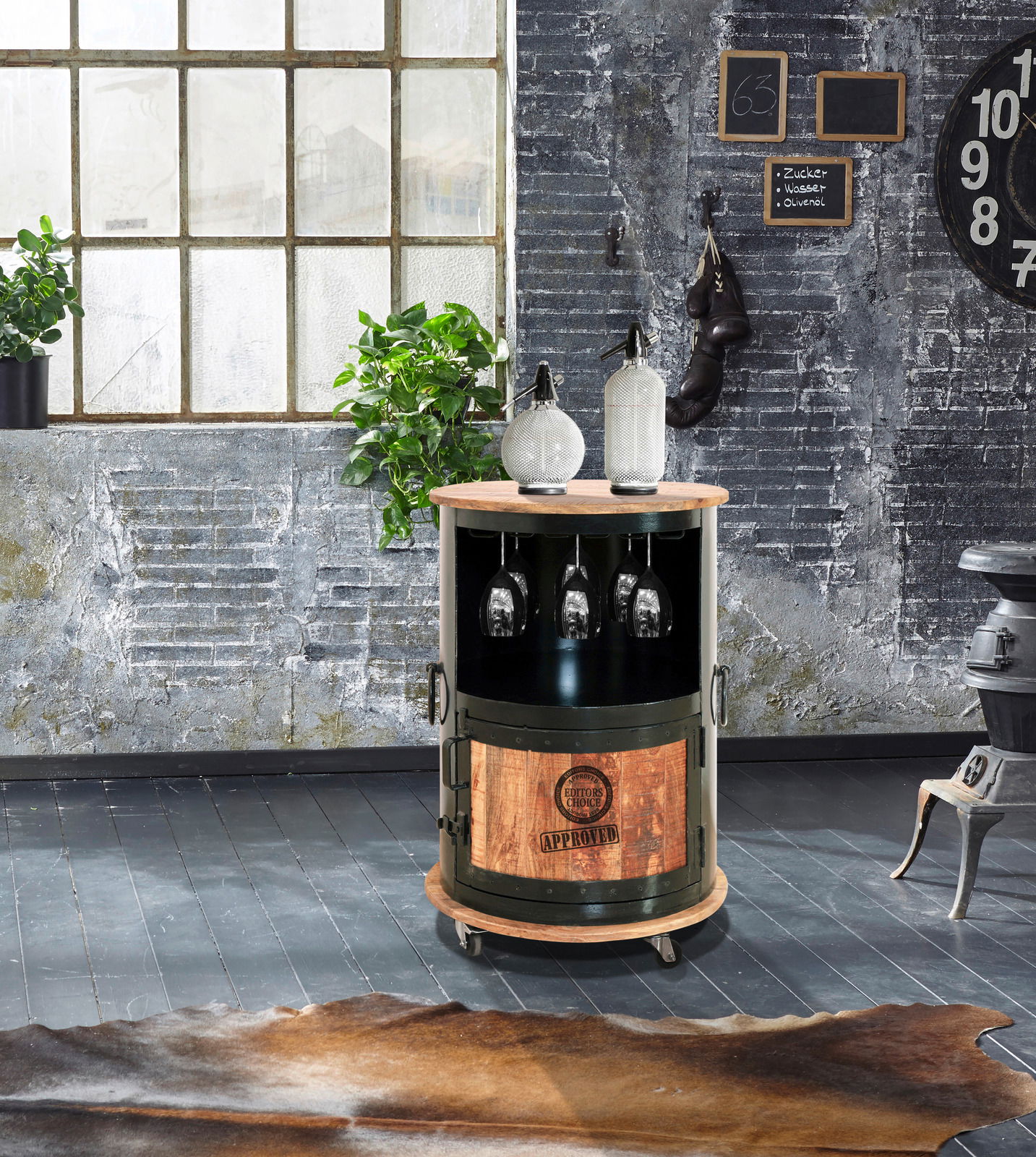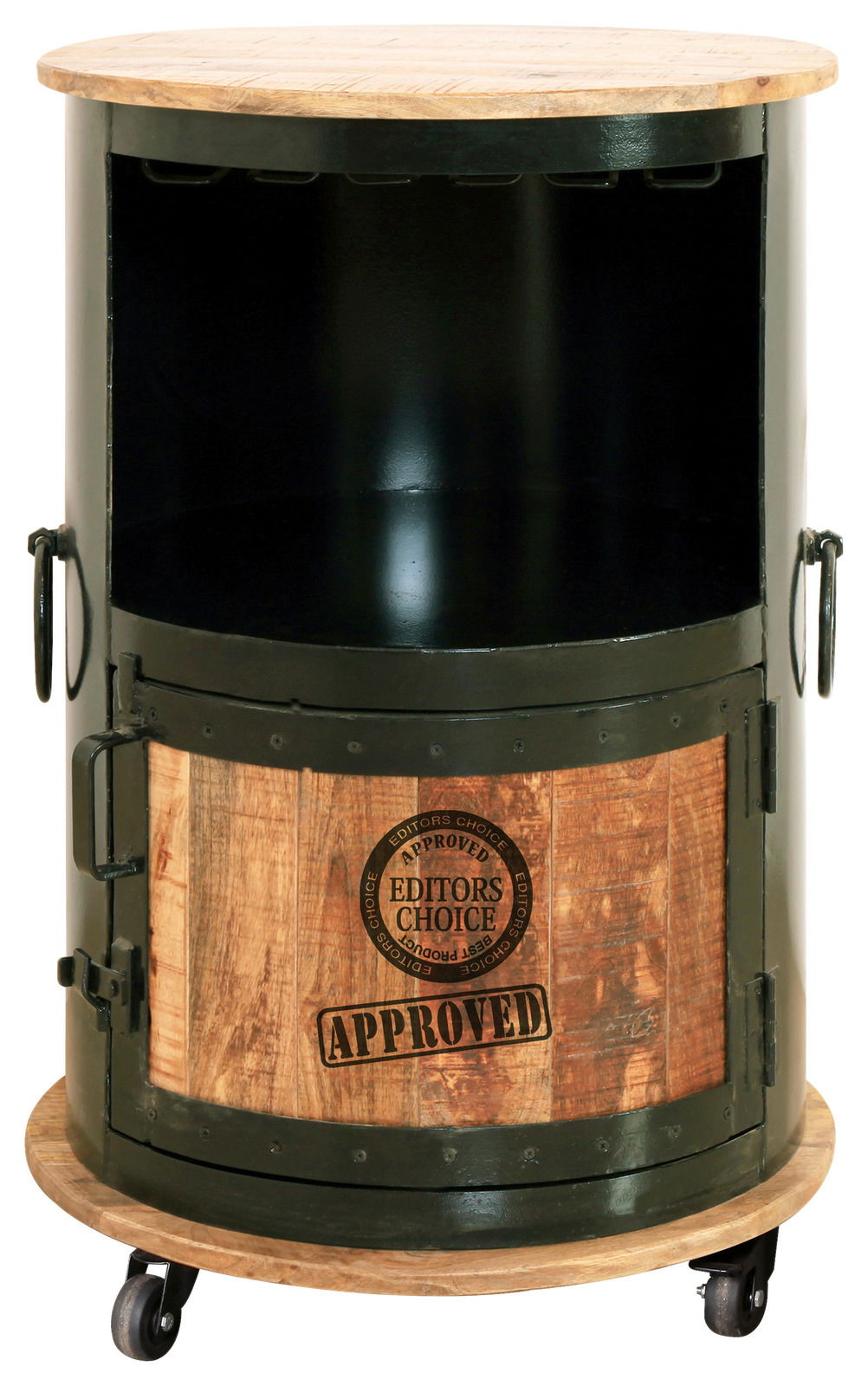 Mit dem Landscape Barschrank "IRON" erhalten Sie einen originellen Hingucker. Der grünnuancierte runde Metallkorpus versprüht Retrocharme mit Details aus hellbraunem Mangoholz, die sich gut mit dem modernen Landhaus- sowie Skandiambiente vertragen.