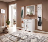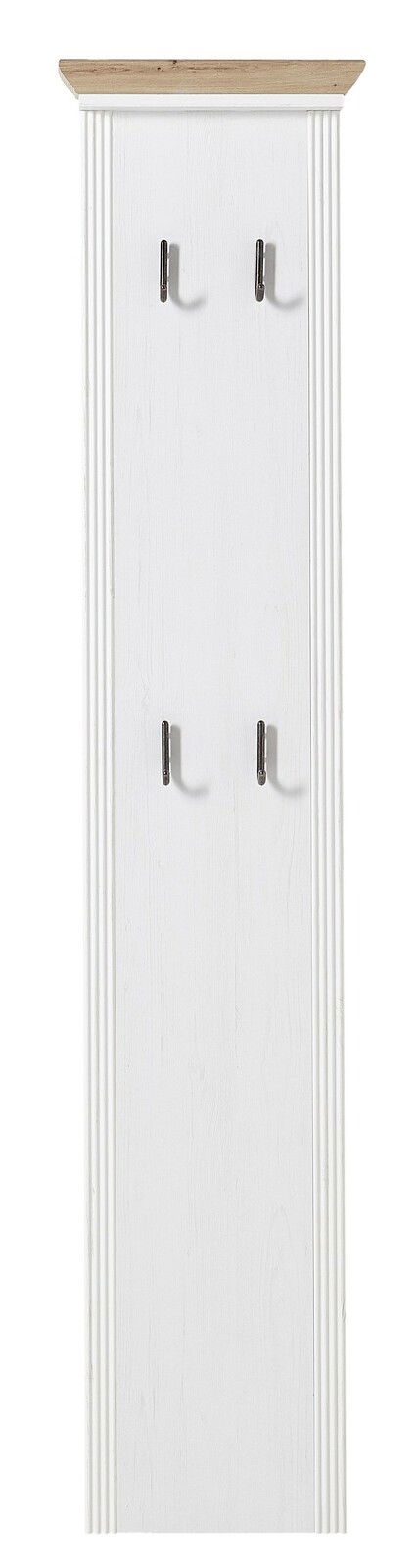 Zum traditionellen Cottageambiente ist die Landscape Garderobenpaneel schmal "JUDITH" eine stilsichere Wahl. Im weißen Pinien-Dekor fügt sich das Paneel zu jedem Farbkonzept. Für charmante Details sorgen antikfarbene Metallhaken sowie die hellbraune Artisan-Eiche-Absetzung.