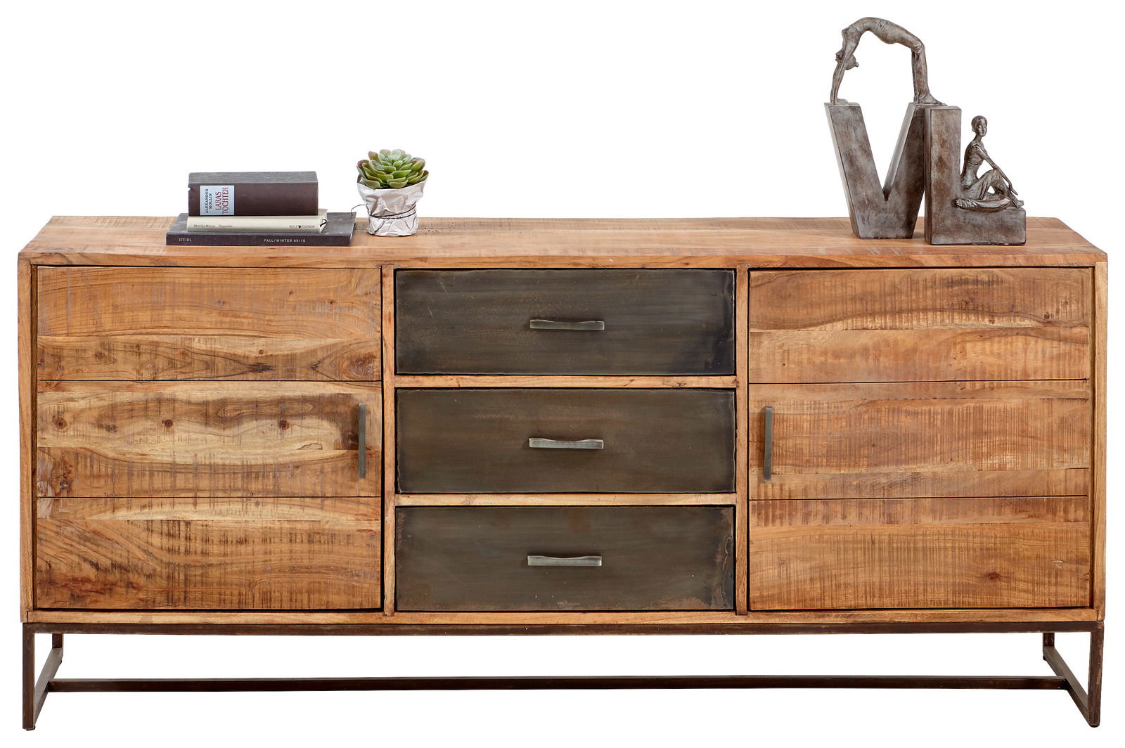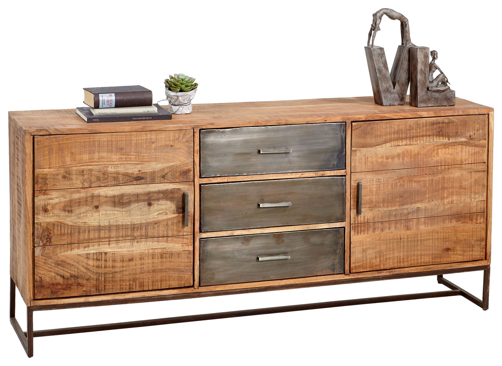Kommode in EchtholzqualitätDer Beisteller in der Größe von B/H/T ca. 175 x 77 x 40 cm besteht aus massivem Akazienholz und sorgt mit 2 Türen und 3 Schubladen für die Unterbringung Ihrer Lieblingsstücke. Griffelemente und Untergestell bestehen aus Eisen. Holen Sie sich die Landscape Kommode "SPRING"!