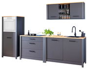 Modul-Küchenblock SORBA mit durchdachten Details Der Landscape Modul-Küchenblock SORBA überzeugt durch seine gut durchdachten Details, die jeden Küchentag erleichtern. Die Kombination aus Drehtüren und Schubladen bietet reichlich Stauraum und sorgt für Ordnung. Das anthrazitfarbene Design harmoniert perfekt mit der Eiche Artisan Arbeitsplatte und schafft ein harmonisches Gesamtbild. Die Verwendung von Holznachbildung garantiert Langlebigkeit und pflegeleichte Oberflächen. Nutzen Sie die Chance, Ihre Küche in eine stilvolle und funktionale Oase zu verwandeln. Bestellen Sie den Landscape Modul-Küchenblock SORBA noch heute und erleben Sie eine neue Dimension der Küchenplanung.