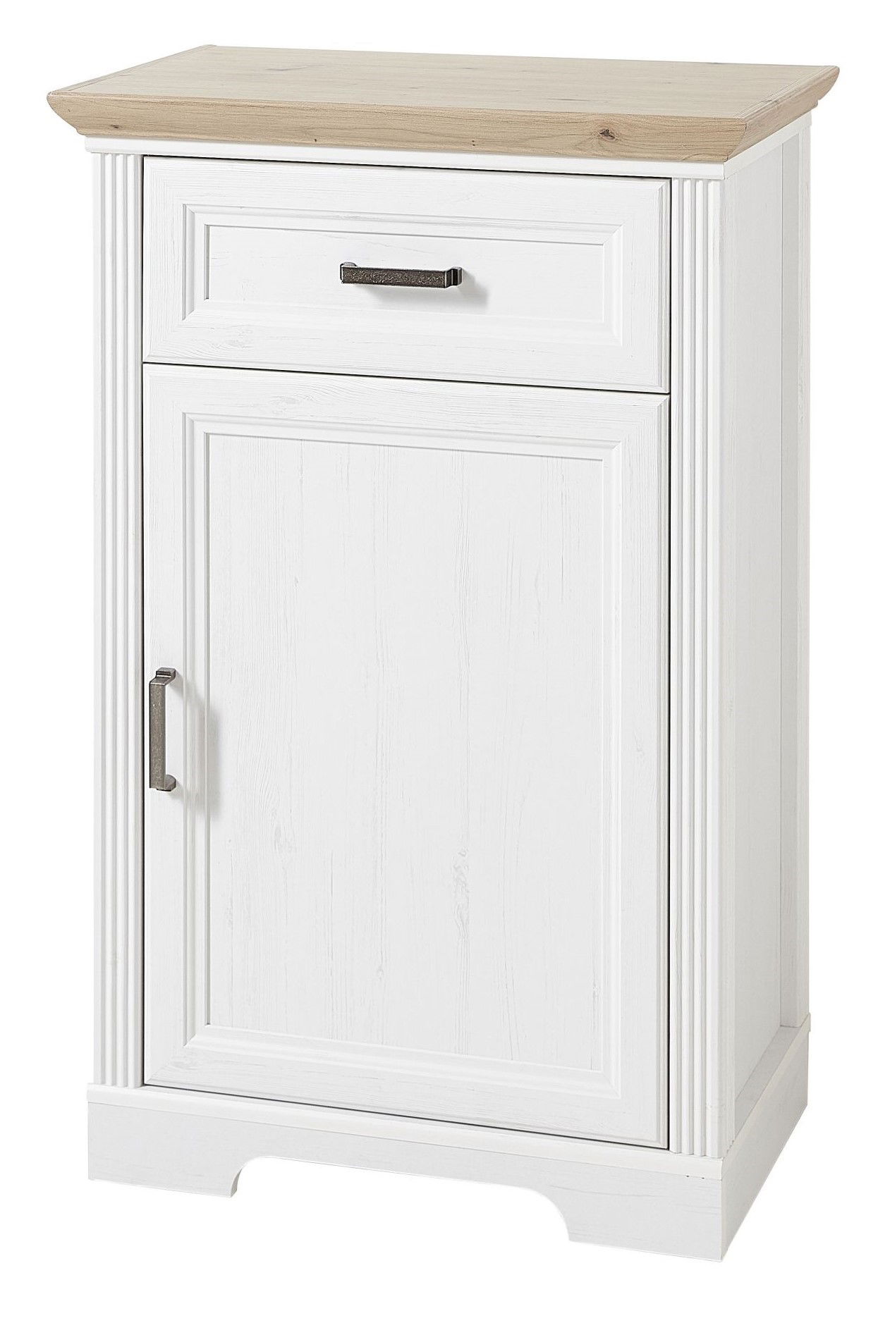 Mit diesem schönen Schuhschrank haben Sie Ihr Schuhwerk mit einem Griff zur Hand. Hinter einer Drehtür können Sie verschiedenste Gegenstände verstauen. Ein Schubkasten trägt dazu bei, Ihre vier Wände ordentlich zu halten. Das Modell JUDITH stellt zwei Böden zur Verfügung. Ein ausgezeichnetes Wohnerlebnis und durchdachtes Design prägen den Schuhschrank der Marke Landscape. Das Modell JUDITH ergänzt Ihr persönliches Einrichtungskonzept dank seines ländlichen Stils. Der Schuhschrank aus Holz-Nachbildung vermag mit Fronten aus einem weissen Material zu begeistern. Er hat ein Breitenmass von insgesamt 65 Zentimetern, eine Höhe von 102 Zentimetern sowie eine Tiefe von 41 Zentimetern. Dieser Schuhschrank überzeugt als praktische Ergänzung für Ihre vier Wände. Das Modell JUDITH hat ausserdem das Merkmal: soft_close_function.