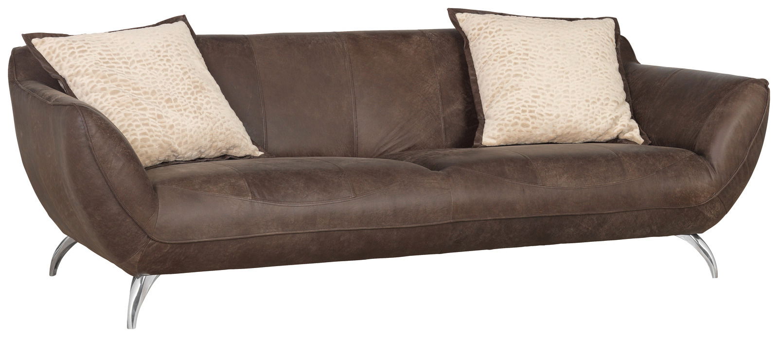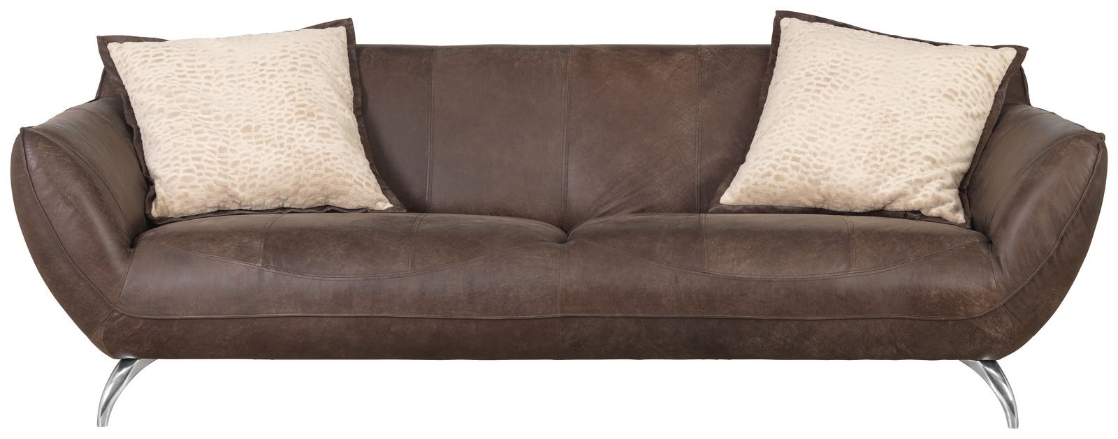 Sofa 2-sitzig - Ihre Wohlfühloase im Dschungel des Alltags"BAKERSFIELD" von Landscape ist mit einer Biese aus dunkelbraunem Leder abgesetzt. Zwei Kissen aus beigem Stoff gehören ebenfalls zum Sofa 2-sitzig. Die kompakten Maße B/H/T von ca. 205 x 83 x 100 cm ermöglichen vielseitige Stellmöglichkeiten. Für langlebigen Komfort des Sofa 2-sitzig sorgt die Fütterung aus Polyätherschaum auf Wellenunterfederung. Die konisch geschwungenen Füße aus Metall verleihen eine moderne Leichtigkeit. Zudem ermöglichen sie die problemlose Bodenpflege. Machen Sie Jagd auf dieses exklusive Sitzmöbel "BAKERSFIELD" von Landscape!