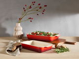 Erleben Sie die perfekte Kombination aus Funktionalität und Ästhetik mit der LE CREUSET Auflaufform in Kirschrot. Diese formschöne Auflaufform aus hochwertigem Steinzeug ist ein unverzichtbares Küchenutensil für alle, die gerne kochen und backen. Dank ihrer großzügigen Größe von 32 cm eignet sie sich ideal für die Zubereitung von Aufläufen, Gratins oder Lasagne für die ganze Familie. Das leuchtende Kirschrot bringt Farbe in Ihre Küche und auf Ihren Tisch, während das robuste Material für eine gleichmäßige Wärmeverteilung sorgt und Ihre Gerichte optimal gart.