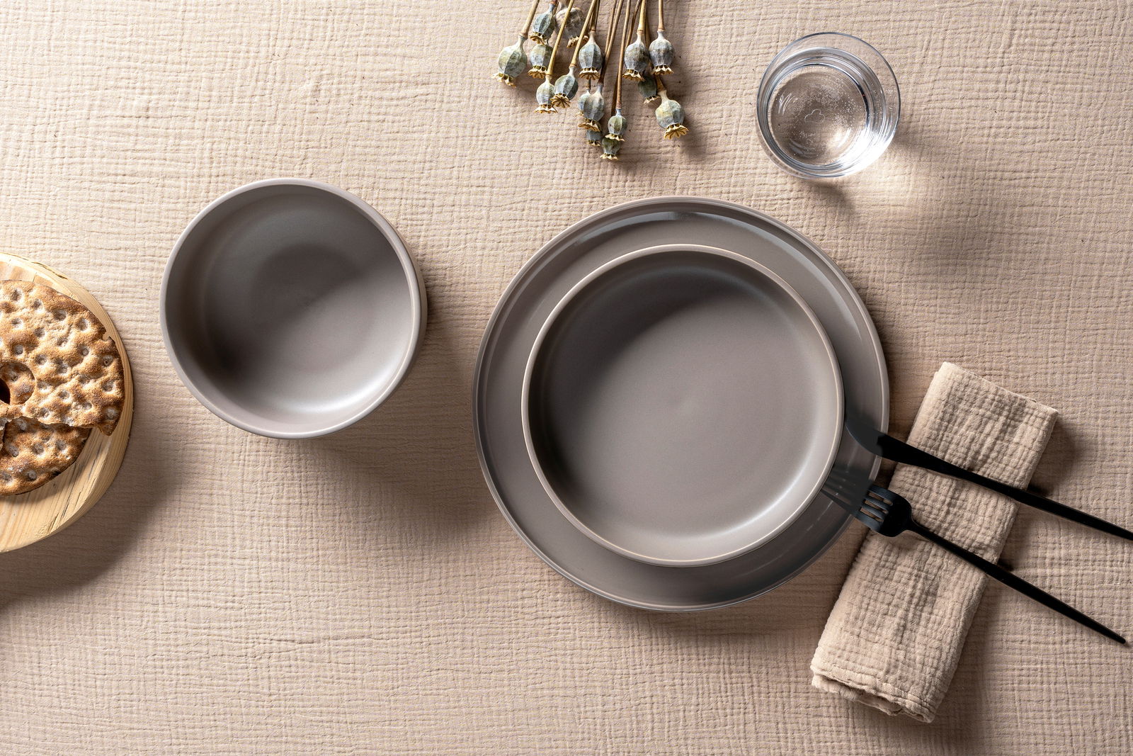 Leonardo Geschirrset 12-tlg. ROMA – Eleganz trifft Funktionalität Erleben Sie die perfekte Kombination aus Design und Funktion mit diesem Keramik-Geschirrset. Die sanfte Taupe-Farbe bietet eine vielseitige Grundlage, die sich harmonisch in jedes Tischarrangement einfügt. Die Keramik sorgt nicht nur für eine ansprechende Ästhetik, sondern auch für eine angenehme Haptik und einfache Pflege. Ob für ein festliches Dinner oder ein gemütliches Frühstück, dieses Set wird Sie begeistern. Zögern Sie nicht länger und vervollständigen Sie Ihre Tafel mit diesem stilvollen Geschirrset.