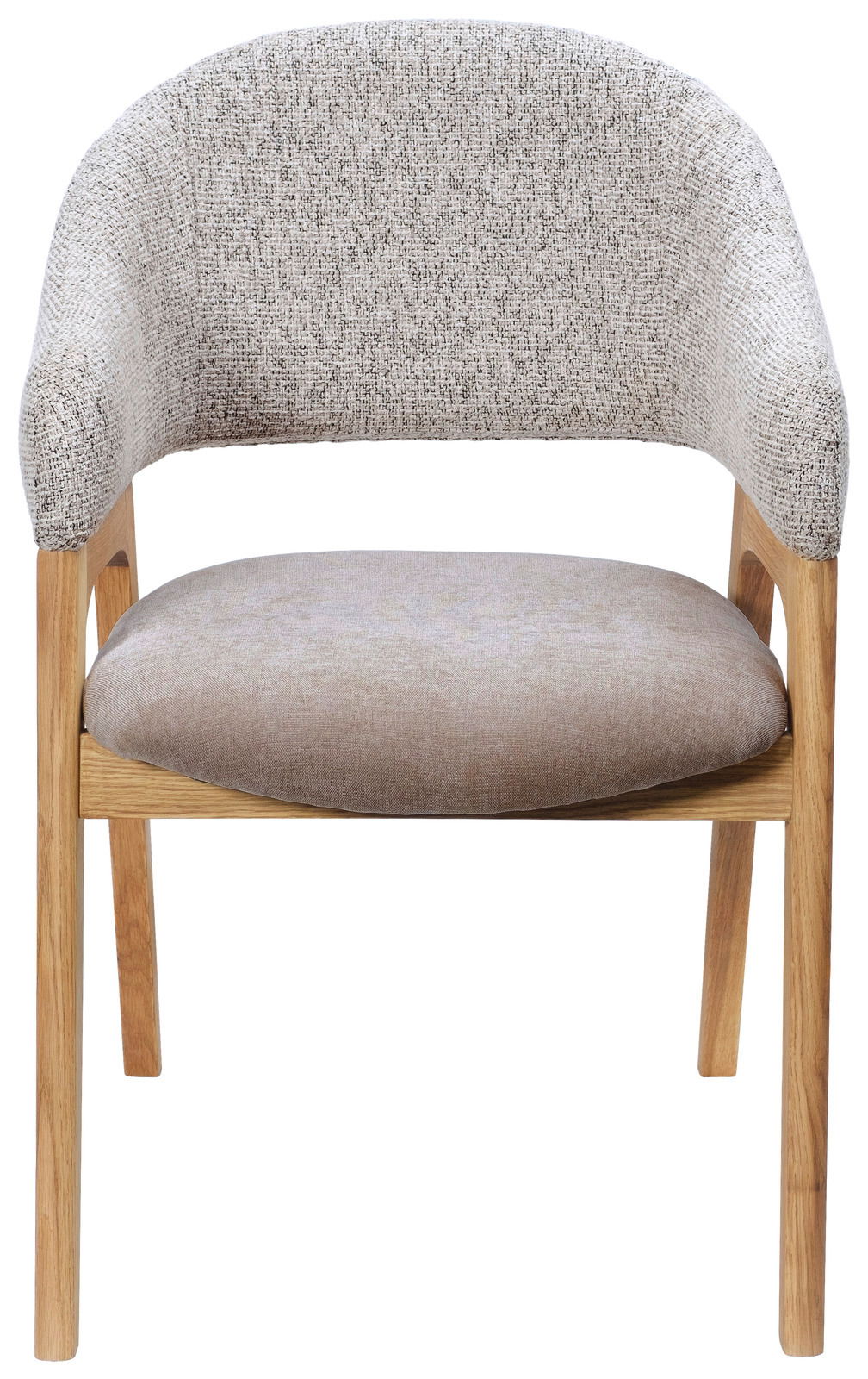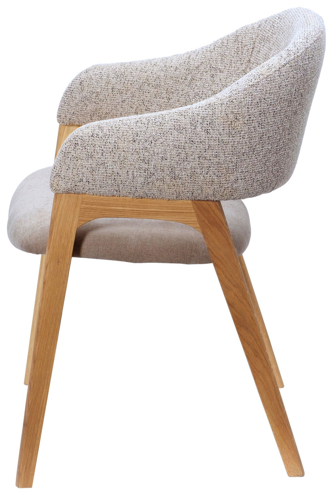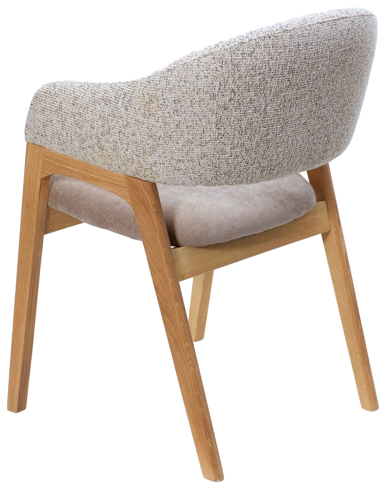 Der Linea Natura Armlehnstuhl BERTI ist die perfekte Ergänzung für jedes moderne Zuhause. Mit seinem stilvollen Design und der harmonischen Farbgebung in Taupe und Eiche fügt er sich nahtlos in jedes Interieur ein. Der Bezug aus hochwertigem Stoff sorgt für ein angenehmes Sitzgefühl, während das Gestell aus massivem, naturgeöltem Eichenholz Stabilität und Langlebigkeit garantiert. Die Sitzhöhe von 50 cm und die Sitztiefe von 47,5 cm bieten optimalen Komfort, während die Sitzbreite von 48 cm ausreichend Platz bietet. Der Stuhl ist nicht drehbar und nicht höhenverstellbar, was ihn ideal für den Einsatz in Esszimmern oder Arbeitsbereichen macht.