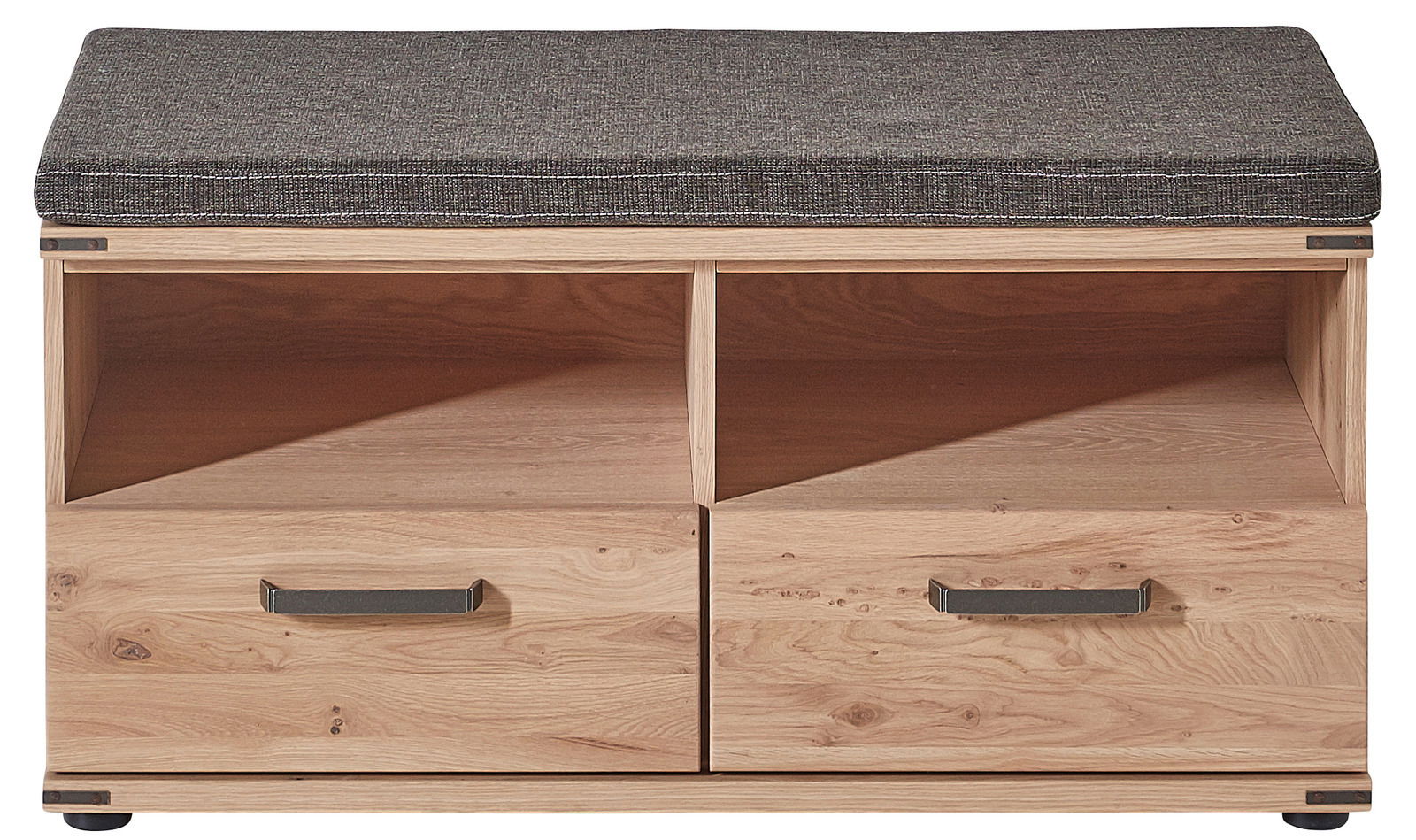 Mit dieser Garderobenbank können Sie rundum zufrieden sein. Der Markenartikel von Linea Natura verfügt über Schubladen als integriertes Highlight. Er besticht nicht nur durch seinen modernen Stil, sondern ist auch noch wunderbar gemütlich. Die Bank überzeugt mit einem Gestell aus Vollholz. Die Bank in der Farbe Eiche weist ein Breitenmass von insgesamt 101 Zentimetern, eine Höhe von 47 Zentimetern sowie eine Tiefe von 41 Zentimetern auf. Das Gewicht liegt montiert bei 56 Kilogramm. Gönnen Sie sich diese Sitzbank für Ihr Zuhause.