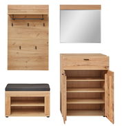Das Set beinhaltet einen Schuhschrank, ein Garderobenpaneel, einen Spiegel und eine Garderobenbank. Alle Teile harmonieren perfekt miteinander und schaffen eine einladende Atmosphäre im Eingangsbereich. Der Einsatz von Massivholz verspricht Langlebigkeit und Stabilität. Bestellen Sie jetzt und verleihen Sie Ihrem Zuhause einen Hauch von moderner Eleganz!