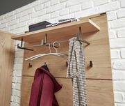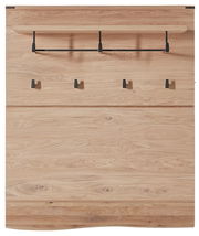 Sorgen Sie mit dem modernen und stilvollen Linea Natura Garderobenpaneel BOSTE für Ordnung in Ihrem Eingangsbereich. Das Paneel besticht mit seinem Material aus edlem Wildeiche-Holzfurnier und einer ansprechenden Farbgebung. Mit den Maßen B/H/T ca. 101 x 120 x 26cm und einem Gewicht von 38kg ist es nicht nur optisch ein Highlight, sondern auch stabil und langlebig. Die vier integrierten Haken und eine Kleiderstange bieten ausreichend Platz für Jacken und Mäntel, während die zusätzliche Ablagefläche ideal für Accessoires wie Hüte oder Taschen ist.