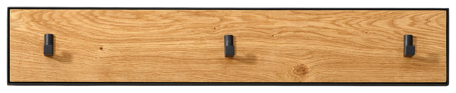 Die Linea Natura Hakenleiste "KELIO" schafft Ordnung in Flur und Wohnräumen. Teilmassiv in individueller Wildeiche ausgeführt, überzeugt die Leiste durch ihren natürlichen Stil, der sich mit modernen wie klassischen Einrichtungsstilen kombinieren lässt. Drei stabile schwarze Haken aus Metall bieten ausreichend Gelegenheit, etwas aufzuhängen. Mit den kompakten Maßen B/H/T von ca. 85 x 12 x 3 cm passt die Hakenleiste auch in kleinere Räume. Schaffen Sie Ordnung mit der Linea Natura Hakenleiste "KELIO"!