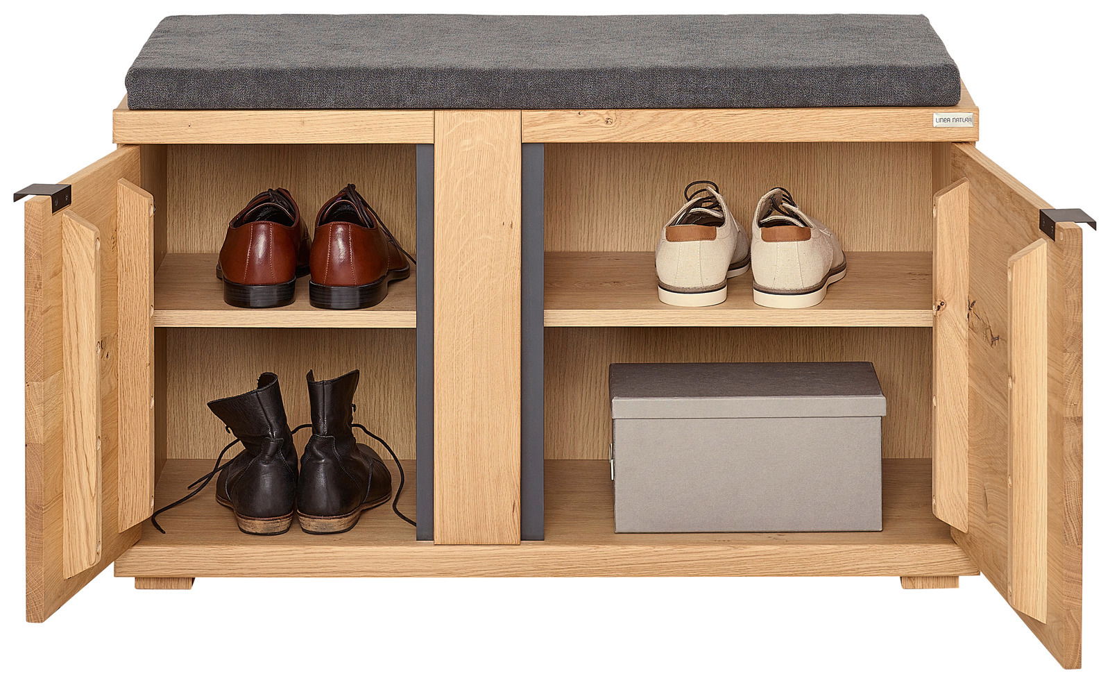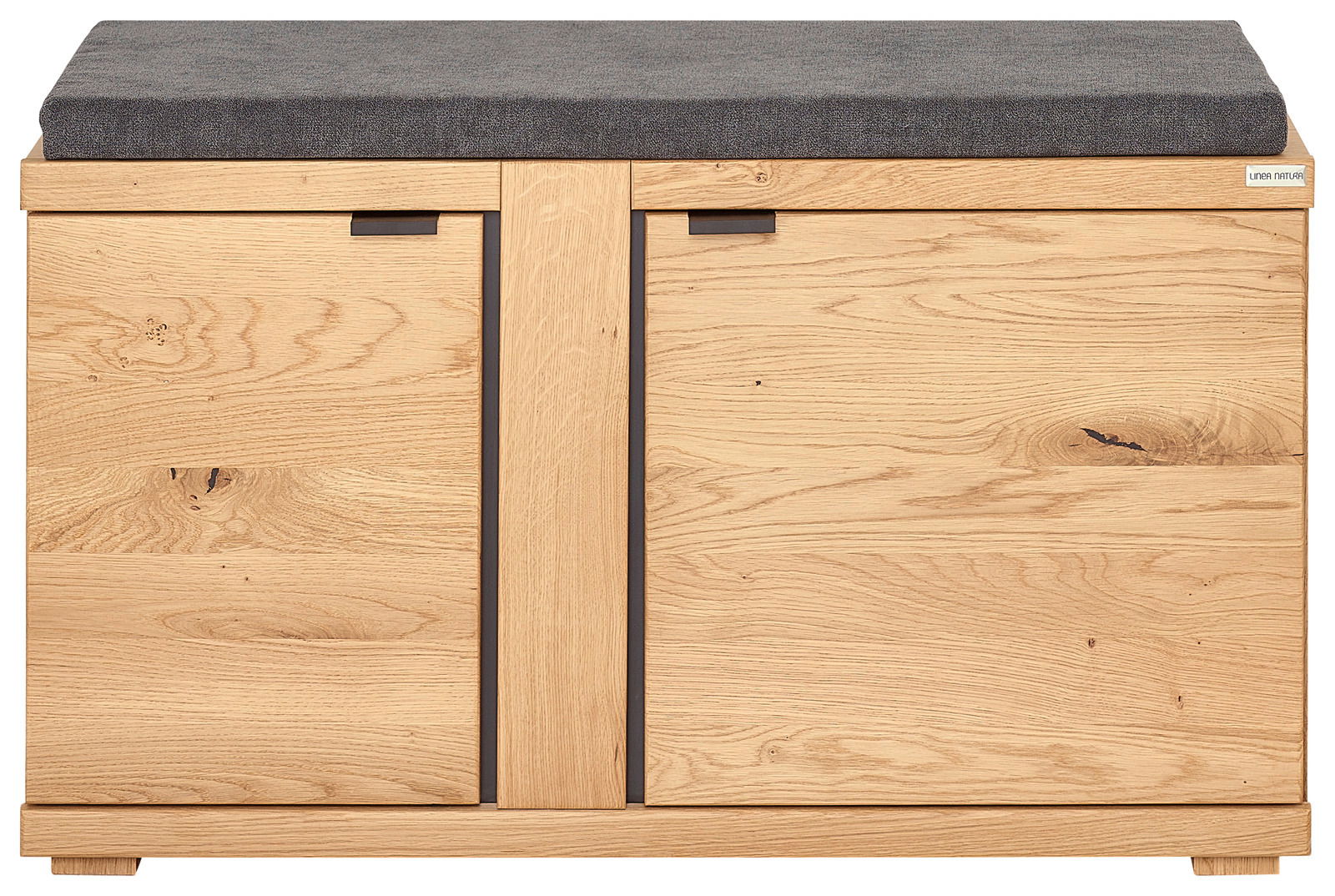 Linea Natura Sitzbank AMAYA - Praktischer Stauraum Entdecken Sie die Vielseitigkeit der Linea Natura Sitzbank AMAYA, die mit ihren zwei Drehtüren großzügigen Stauraum bietet. Ideal für die Aufbewahrung von alltäglichen Gegenständen, sorgt sie für Ordnung und Übersichtlichkeit in Ihrem Zuhause. Die Kombination aus massiver und furnierter Wildeiche verleiht der Bank eine robuste und zugleich elegante Ausstrahlung. Dieses Möbelstück ist nicht nur ein Hingucker, sondern auch funktional und langlebig. Lassen Sie sich von der natürlichen Schönheit der AMAYA inspirieren und bestellen Sie noch heute, um Ihre Einrichtung zu vervollständigen.
