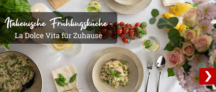 Der Frühling bringt frische Zutaten, leichte Gerichte und Lust auf mediterranen Genuss – perfekt für eine genussvolle Frühlingsküche im italienischen Stil. Saftige Tomaten, aromatische Kräuter und feines Olivenöl sorgen für Gerichte voller Geschmack und Leichtigkeit. Mit dem passenden Küchenzubehör wird das Kochen dabei noch einfacher und macht gleich doppelt so viel Spaß. Ob Pasta, frische Salate oder Antipasti: Mit den richtigen Küchenhelfern und stilvollen Servierideen holt ihr euch das italienische Lebensgefühl direkt nach Hause. Lasst euch inspirieren und entdeckt, wie eure Küche zur kleinen Trattoria wird.