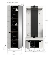 Das moderne Design der Garderobenkombination CANU wird durch die grifflosen Drehtüren perfekt abgerundet. Die hochwertige Holznachbildung sorgt für Langlebigkeit und eine ansprechende Optik. Mit vier Türen bietet sie viel Stauraum für Jacken, Mäntel und Accessoires. Die Sitzbank ermöglicht ein bequemes An- und Ausziehen der Schuhe, während das Paneel zusätzlichen Platz für Hüte und Schals bereitstellt. Verleihen Sie Ihrem Eingangsbereich ein elegantes und aufgeräumtes Ambiente. Entscheiden Sie sich noch heute für die Garderobenkombination CANU und genießen Sie die perfekte Kombination aus Design und Funktionalität.