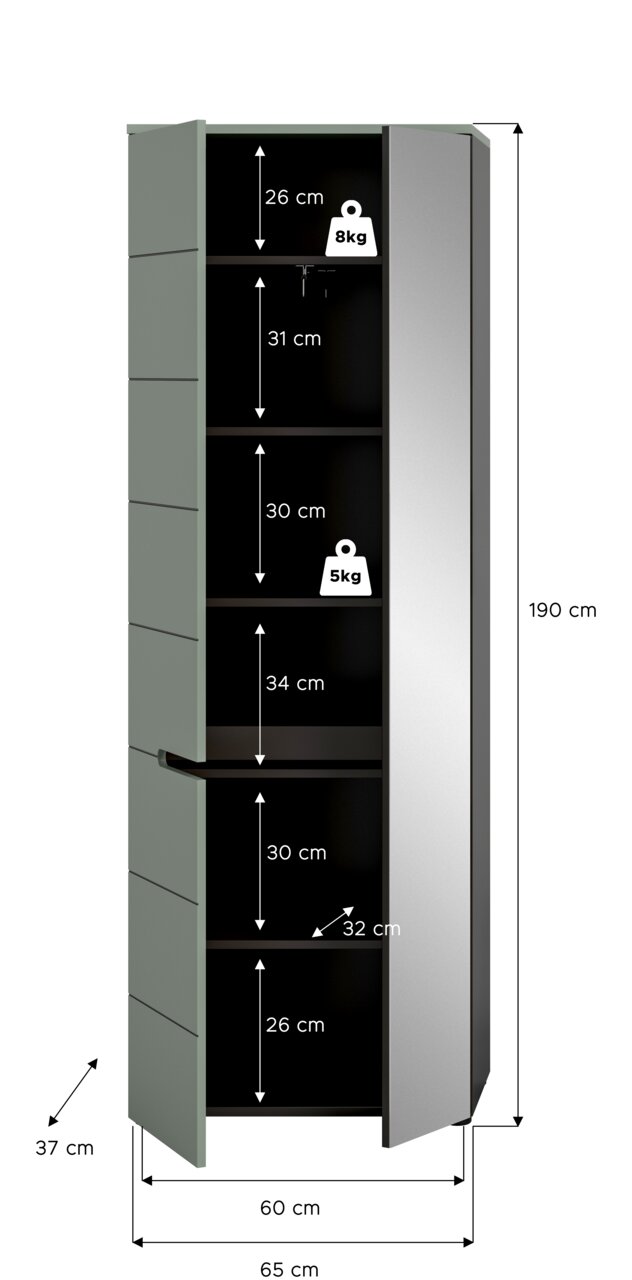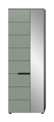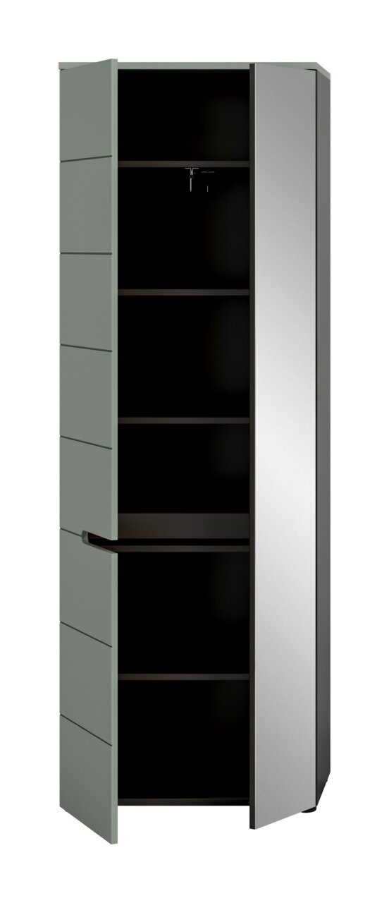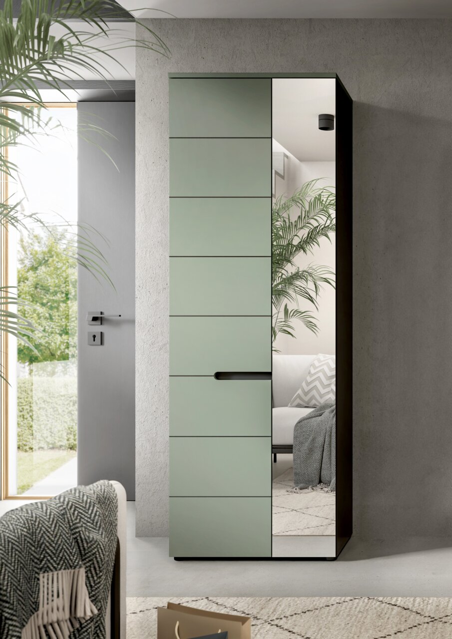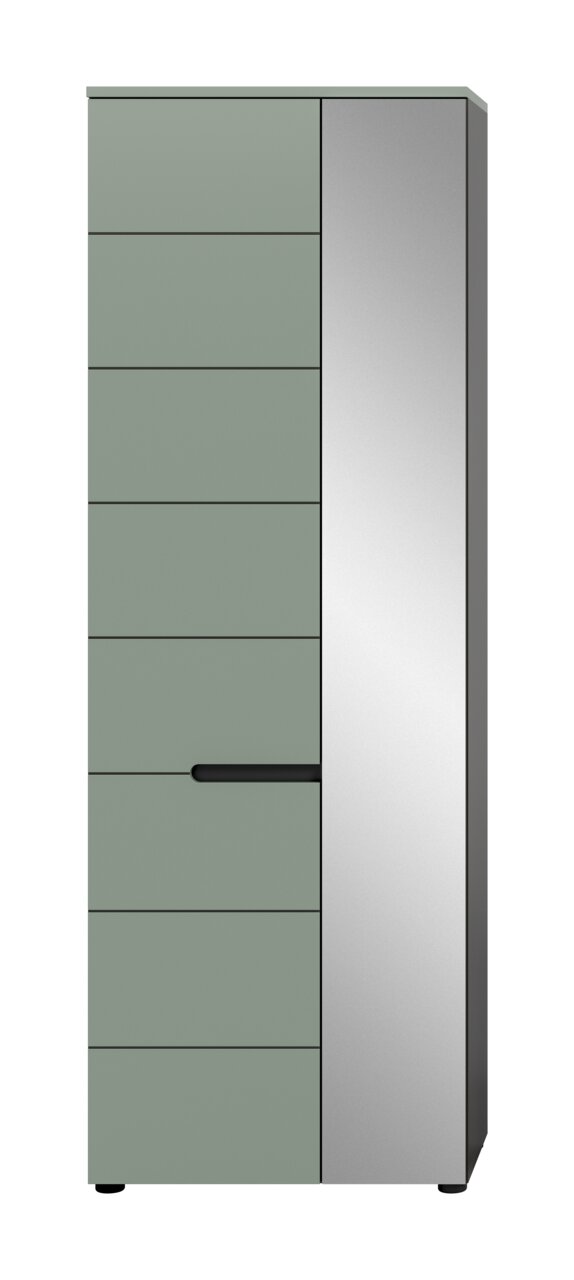 Der MID.YOU Garderobenschrank CANU ist die perfekte Ergänzung für jedes moderne Zuhause. Mit seinem stilvollen Design in Front Smoke Green Nachbildung und einem Korpus in Basalt grau fügt er sich nahtlos in jeden Raum ein. Die grifflosen Türen verleihen dem Schrank ein minimalistisches und elegantes Erscheinungsbild. Der Schrank ist mit zwei Drehtüren ausgestattet, die einen einfachen Zugang ermöglichen. Hergestellt aus hochwertiger Holznachbildung, bietet er eine langlebige und pflegeleichte Lösung für Ihre Garderobenbedürfnisse. Die harmonische Farbkombination aus Grün und Basalt sorgt für einen modernen und trendigen Look.