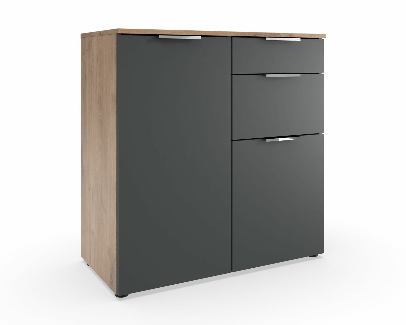 Erleben Sie die perfekte Kombination aus modernem Design und Funktionalität mit der MID.YOU Kombikommode LEVEL 36. Diese stilvolle Kommode besticht durch ihren trendigen Look, der durch die harmonische Farbgebung in Graphit und Eiche unterstrichen wird. Die schwarze Basis aus Kunststoff verleiht der Kommode Stabilität und Eleganz. Gefertigt in Deutschland, vereint sie Qualität und modernes Design in einem Möbelstück. Die Front in Graphit und der Korpus in Eiche sorgen für einen eleganten Kontrast, der sich nahtlos in jedes moderne Wohnkonzept einfügt. Diese Kombikommode ist die ideale Wahl für trendbewusste Einrichtungsliebhaber.