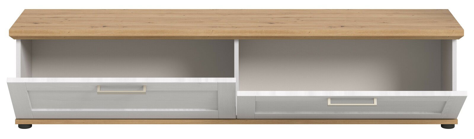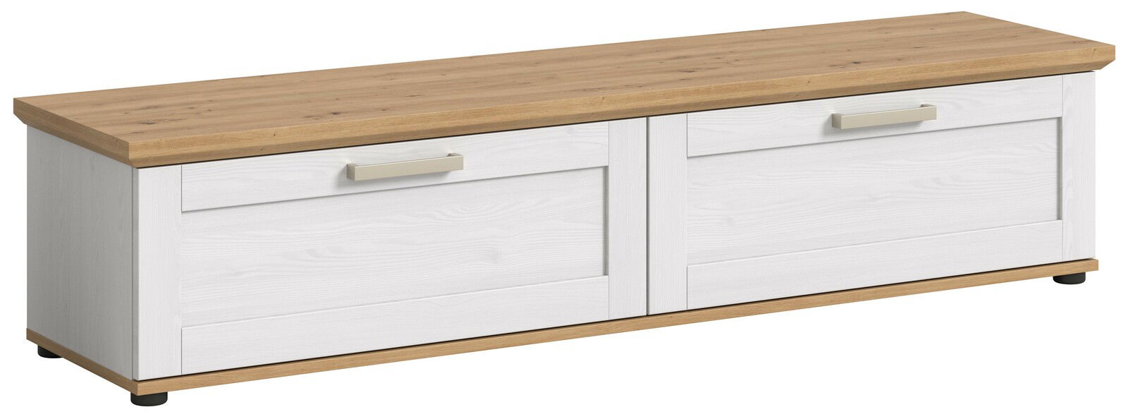 Das Mid.You Lowboard Verona beeindruckt durch seine moderne Ästhetik und das stilvolle Design in Sibiu Lärche Nachbildung. Die klaren Linien und die harmonische Kombination aus Weiß und der Akzentfarbe Artisan Eiche Nachbildung verleihen Ihrem Wohnraum eine elegante Note. Der silberfarbene Fuß aus robustem Kunststoff ergänzt das Gesamtbild perfekt. Mit der Holznachbildung als Hauptmaterial bietet dieses Lowboard nicht nur eine ansprechende Optik, sondern auch eine langlebige Konstruktion. Die Bügelgriffe fügen sich nahtlos in das Gesamtbild ein und ermöglichen ein einfaches Öffnen der Türen und Schubladen. Erleben Sie eine ideale Verbindung von Funktionalität und Stil.