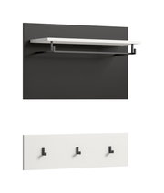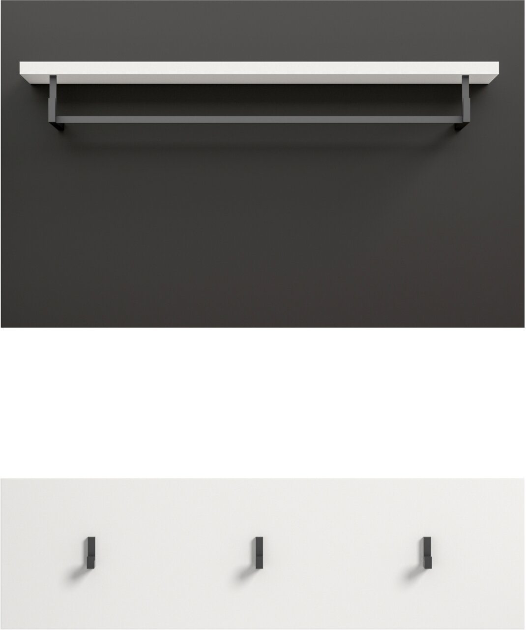 Das MID.YOU Paneel CANU ist eine hervorragende Wahl für alle, die modernes Design und Funktionalität schätzen. In einer stilvollen Kombination aus Weiß und Basalt grau Nachbildung bietet es eine elegante Ergänzung für jeden Raum. Gefertigt aus hochwertiger Holznachbildung, überzeugt das Paneel durch seine ansprechende Optik und Langlebigkeit. Die Hauptfarbe Weiß sorgt für ein helles und freundliches Ambiente, das sich nahtlos in verschiedene Einrichtungsstile integriert. Mit praktischer Ablagefläche und Kleiderstange ausgestattet, bietet das Paneel zusätzlichen Stauraum und Organisation, während die Hakenleiste für Flexibilität bei der Aufbewahrung sorgt.