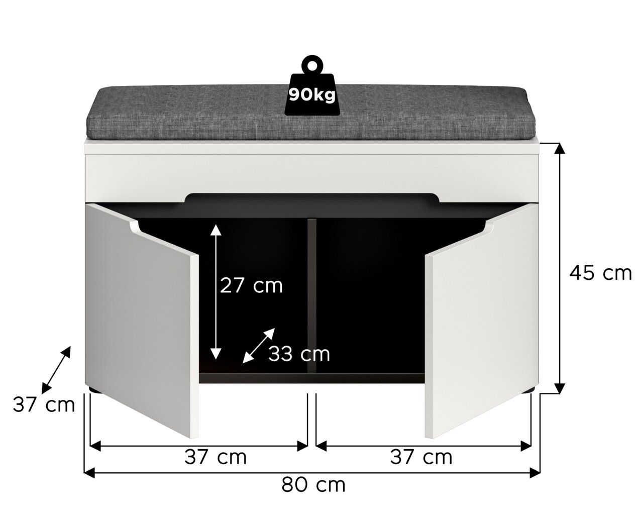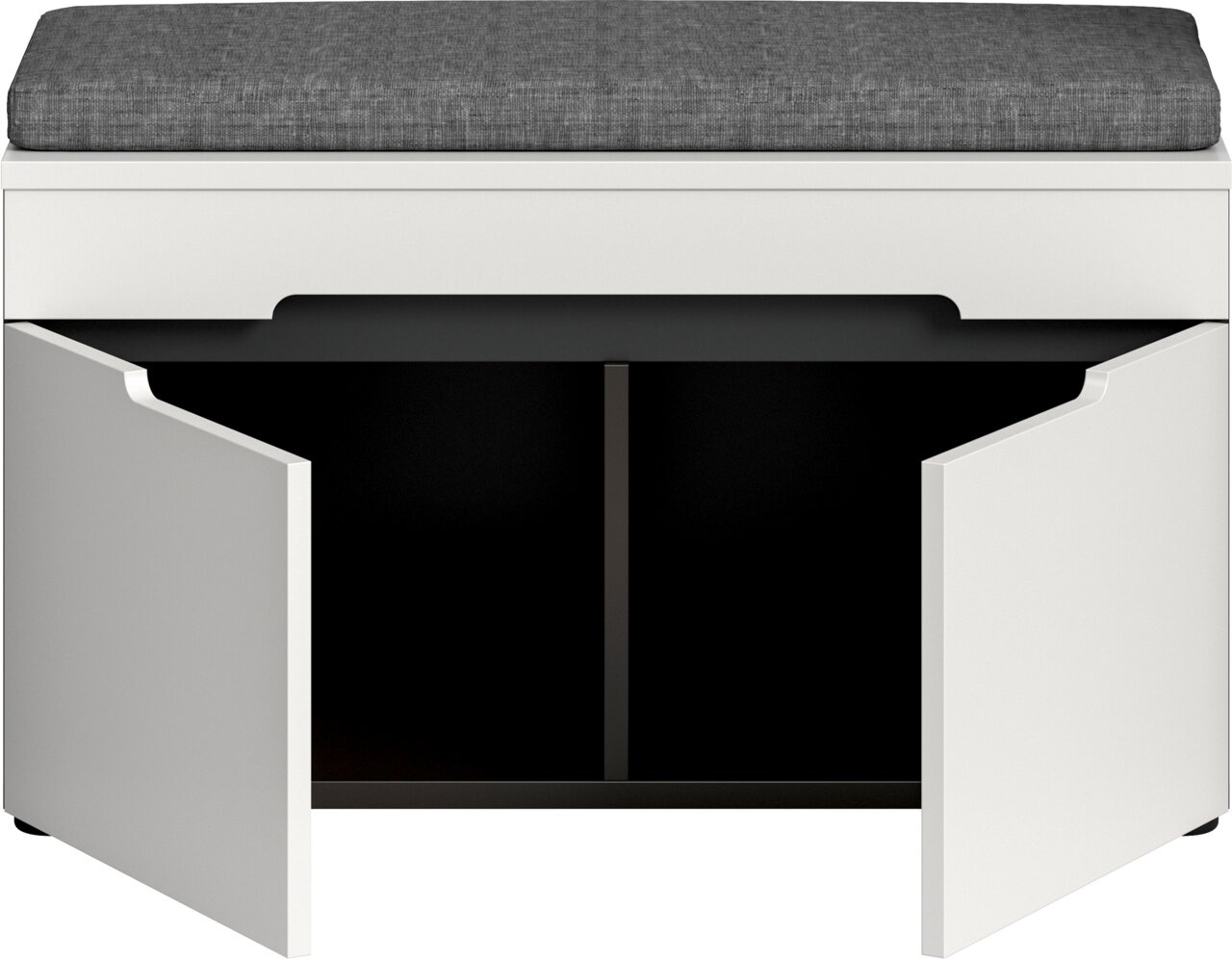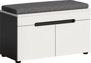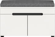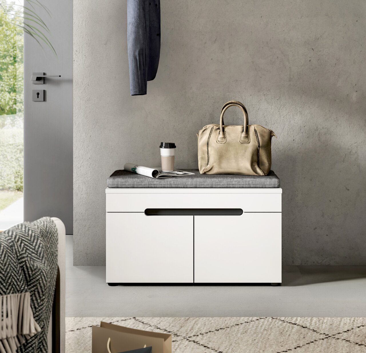 MID.YOU Sitzbank CANU: Komfort trifft Design Die MID.YOU Sitzbank CANU bietet nicht nur ein ansprechendes Design, sondern auch praktische Funktionen. Dank der Softclose-Technologie schließen die zwei Drehtüren nahezu geräuschlos und schonend. Dies ist ideal für Haushalte, die Wert auf Ruhe und Gelassenheit legen. Die grifflosen Türen verstärken das moderne Erscheinungsbild und bieten ein nahtloses Design. Das integrierte Sitzkissen in dezentem Grau sorgt für zusätzlichen Komfort. Lassen Sie sich von der Vielseitigkeit dieser Sitzbank überzeugen und verleihen Sie Ihrem Zuhause ein stilvolles Update. Bestellen Sie noch heute und erleben Sie modernen Wohnkomfort!