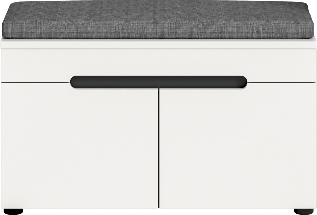 Entdecken Sie die perfekte Kombination aus modernem Stil und funktionalem Design mit der MID.YOU Sitzbank inkl. Sitzkissen CANU. Diese elegante Sitzbank besticht durch ihre kontrastreiche Farbgebung: Eine weiße Front in edler Nachbildung trifft auf einen Korpus in Basaltgrau. Das Design ist aufgeräumt und minimalistisch, unterstrichen durch das grifflose Konzept der Drehtüren. Die hochwertige Holznachbildung sorgt für Langlebigkeit und Stabilität. Zudem bringt das integrierte graue Sitzkissen zusätzlichen Komfort und lädt zum Verweilen ein. Egal ob im Flur, Wohnzimmer oder Schlafzimmer – diese Sitzbank setzt stilvolle Akzente in jedem Raum.