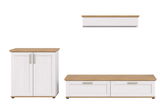 Die Wohnkombination VERONA von MID.YOU vereint modernes Design mit funktionaler Eleganz. Die Kombination aus Sibiu Lärche Nachbildung und Akzent in Artisan Eiche Nachbildung verleiht Ihrem Wohnraum eine zeitgemäße und stilvolle Atmosphäre. Der Korpus und die Fronten in strahlendem Weiß harmonieren perfekt mit den silbernen Kunststofffüßen, die die Leichtigkeit dieser Möbelstücke unterstreichen. Die Bügelgriffe an den Drehtüren bieten nicht nur einen praktischen Nutzen, sondern fügen sich nahtlos in das Gesamtbild ein. Mit Bestandteilen wie einem Highboard, einem Wandboard und einem Lowboard bietet diese Wohnkombination eine vielfältige Möglichkeit der Raumgestaltung.