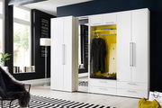 Ordnungsliebende GarderobeDie B/H/T ca. 293 x 265 x 35 cm große, 333,1 kg schwere und stabile Kombination aus einer leicht zu reinigenden Holznachbildung ergänzt große Eingangsbereiche. Für Ordnung sorgen zwei 2-türige Hochschränke mit Fachböden und Schuh-Drahtböden, vier Schubfächer sowie das Garderobenpaneel mit vier Haken und einer Kleiderstange. Leisten Sie sich die Cassando Garderobe "PASSARE"!