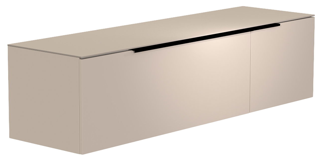 Modernes klares Wohnambiente können Sie mit dem liniengeraden Moderano Hänge-Lowboard "BORMIO" und seinen sandmatten Lackfronten realisieren. Die Print-Glas-Oberplatte in Sandmatt vermittelt Eleganz, derweil schwarze Metallgriffleisten feine Kontraste erzielen.