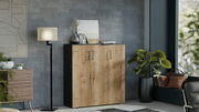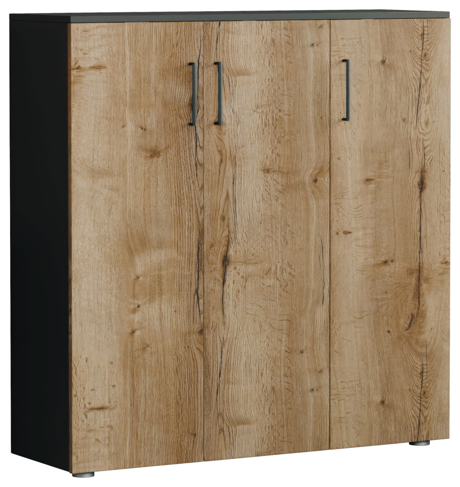 Der Moderano Schuhschrank Breit SHOES ist die ideale Ergänzung für Ihr modernes Zuhause. Mit seinem stilvollen Design in anthrazitfarbenem Korpus und einer Front in Wildeiche setzt dieser Schuhschrank trendige Akzente in jedem Raum. Die Kombination aus Melamin Dekor und den eleganten Stangengriffen verleiht dem Möbelstück ein zeitgemäßes Aussehen, das Funktionalität und Ästhetik harmonisch vereint. Dank der drei Drehtüren bietet der Schuhschrank ausreichend Stauraum für Ihre gesamte Schuhsammlung, während das hochwertige Melamin-Material für Langlebigkeit und einfache Pflege sorgt. Erleben Sie die perfekte Symbiose aus Stil und Funktionalität in Ihrem Eingangsbereich.