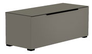 Als attraktives Kontrastmöbel zum hellen Farbklima besitzt das Moderano TV-Lowboard "BORMIO" durch seine mattgraue Print-Glas-Oberplatte puristische Eleganz. Der geradlinige, mattgraue Lackkorpus mit Standfüßen und einer Griffleiste aus schwarzem Metall rundet das moderne Designkonzept ab.