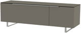 Truhenähnlich auf zwei schlanken Kufenbeinen stehend zieht das Moderano TV-Lowboard "BORMIO" in Ihr modern gehaltenes Zuhause. Die Farbkombination aus Mittelgrau (Front, Korpus) und Alu (Griffleisten, Füße) fügt sich jedem Farbklima.
