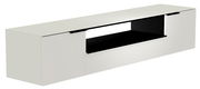 Lackweiß mattierte Fronten und die mattweiße Printglas-Oberplatte verleihen dem geradlinigen Moderano XL-Hänge-Lowboard "BORMIO" puristische Eleganz. Durch Metallgriffe und das mittig platzierte Gerätefach in Schwarz ergibt sich ein stylisher Kontrast.