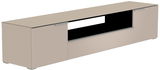 Durch das geradlinige Moderano XL-TV-Lowboard "BORMIO" mit sandmatter Frontgestaltung sowie gleichfarbener Print-Glas-Oberplatte erhält modernes Raumambiente elegantes Flair. Das offene schwarze Gerätefach sowie Standfüße und Griffleisten aus alufarbenem Metall agieren als stylishe Hingucker.