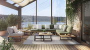 Machen Sie es sich nach Feierabend auf der Musterring 2-Sitzer-Lounge "MR MADEIRA" bequem. Ihr geradliniges, anthrazitfarbenes Metallgestell mit grün gemusterten Sitzauflagen erzeugt modernes Dschungelambiente. Als Landhausakzent dient die praktische Ablage mit geölten Robinienholzlamellen.