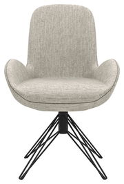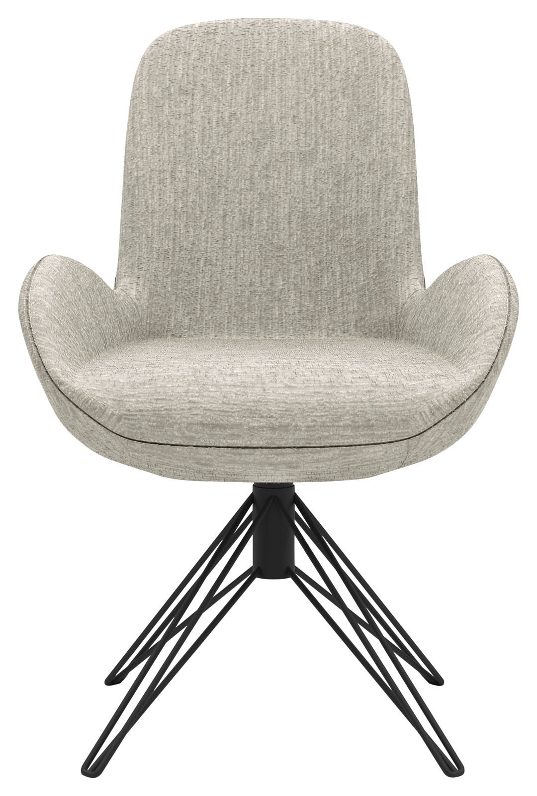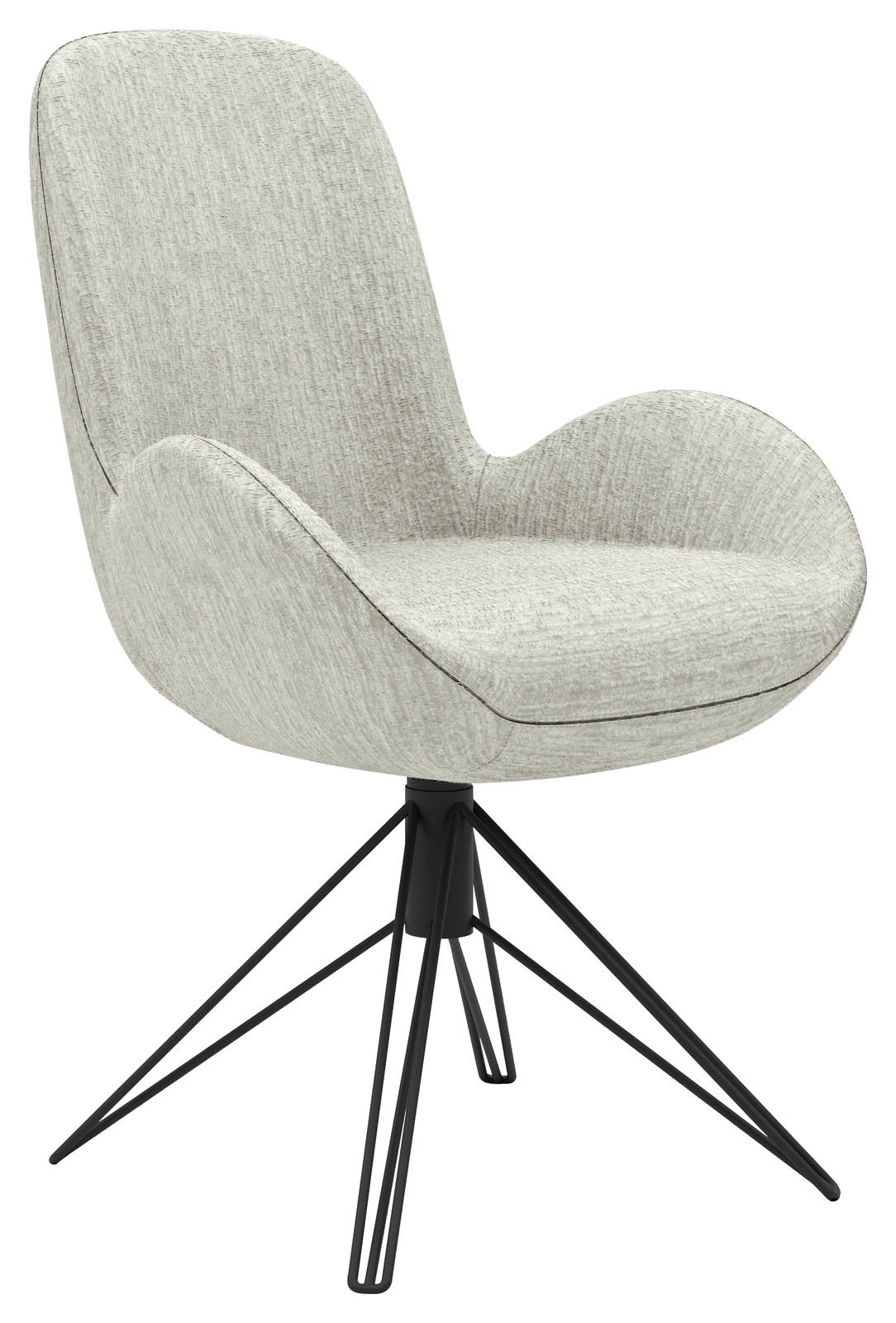 Der Musterring Armlehnstuhl MR HELVIN besticht durch sein modernes Design und hohen Komfort. Die Sitzfläche ist mit einem hochwertigen Stoff in Hellgrau bezogen und bietet eine angenehme Haptik. Das Gestell aus schwarzem Metall sorgt für Stabilität und einen drehbaren Sitzkomfort. Mit einer Breite von 64 cm, einer Höhe von 90 cm und einer Tiefe von 61 cm fügt sich dieser Stuhl perfekt in jede Einrichtung ein. Der Stuhl ist belastbar bis 130 kg und die Armlehnenhöhe beträgt 61 cm, was optimalen Sitzkomfort garantiert.