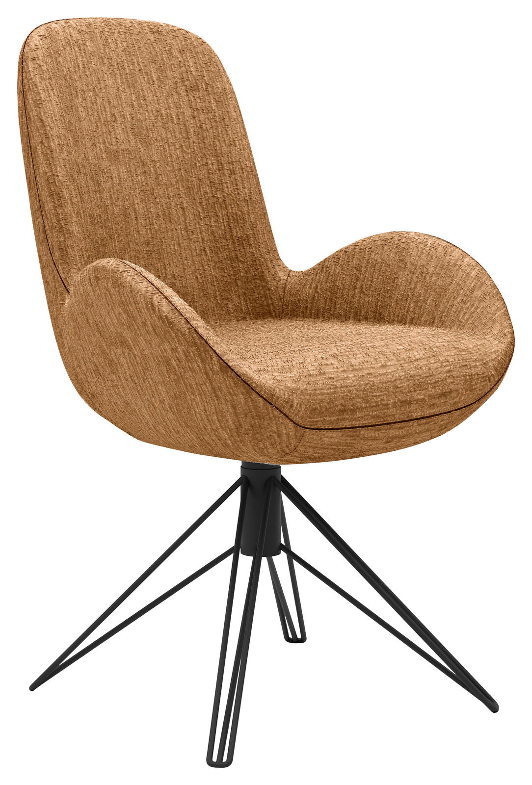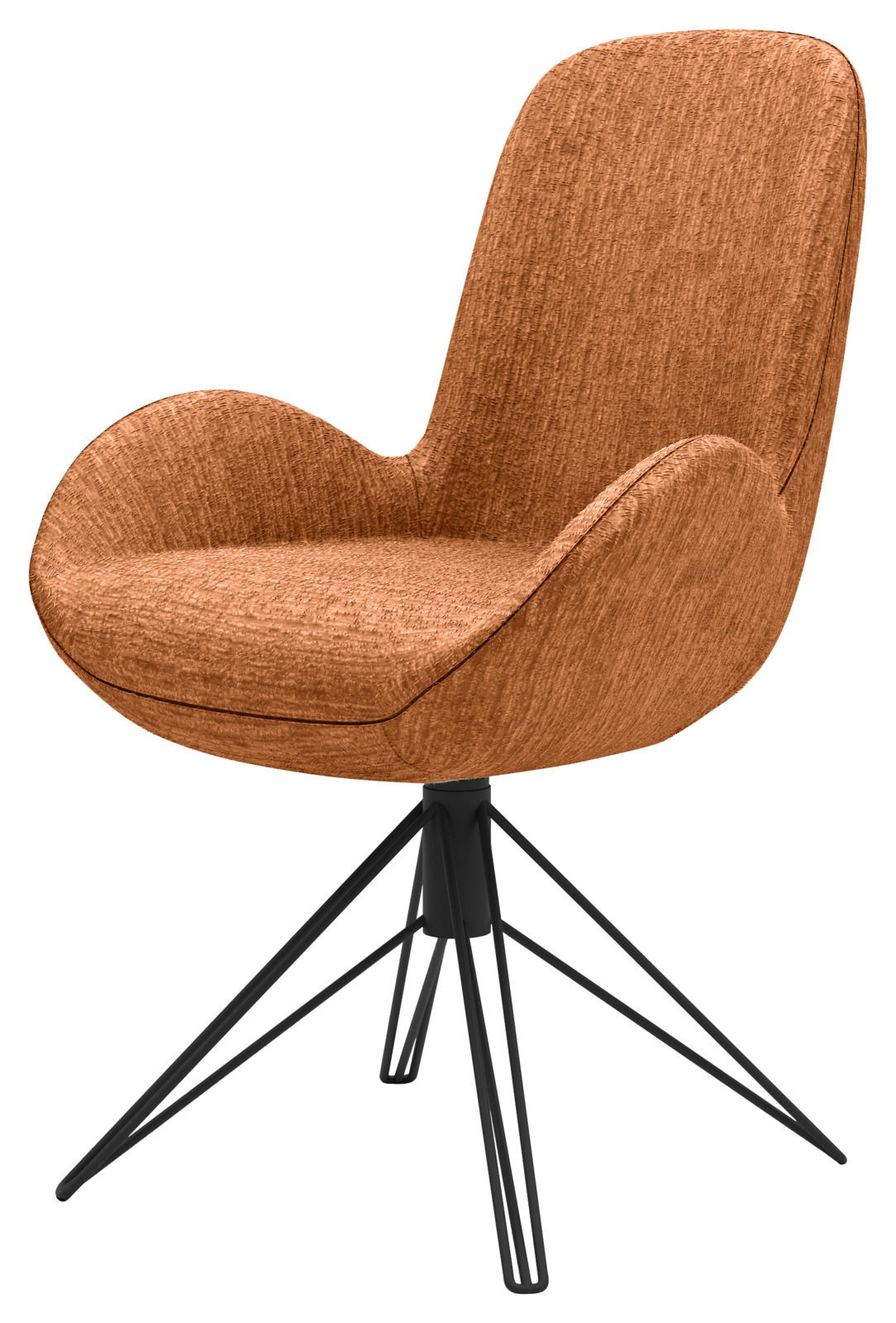 Verleihen Sie Ihrer Einrichtung einen Hauch von Eleganz mit dem Musterring Armlehnstuhl MR HELVIN. Dieser moderne Stuhl besticht durch seinen hochwertigen Stoffbezug in trendigem Kupferton und seinem robusten Drahtgestell in Schwarz. Mit einer Sitzhöhe von 48 cm, einer Sitztiefe von 44 cm und einer Sitzbreite von 55,5 cm bietet er optimalen Sitzkomfort. Der Stuhl hat eine Gesamtmaße von B/H/T ca. 64 x 90 x 61 cm und eine maximale Belastbarkeit von 130 kg, was ihn zu einem stabilen und langlebigen Möbelstück macht. Die Armlehnen auf 61 cm Höhe sorgen für zusätzliche Bequemlichkeit.