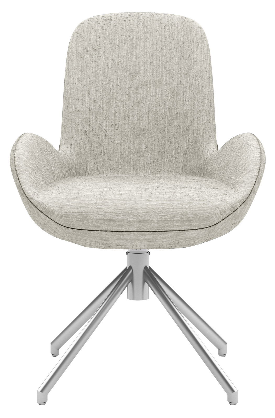Der Musterring Armlehnstuhl MR HELVIN besticht durch sein modernes Design und hervorragenden Sitzkomfort. Mit seinem hochwertigen Stoffbezug in einem eleganten Hellgrau und dem edelstahl-matten Gestell fügt sich der Stuhl perfekt in jede zeitgenössische Einrichtung ein. Die Maße von 64 x 90 x 61 cm machen ihn zu einem kompakten, aber dennoch bequemen Sitzmöbel. Dank der drehbaren Sitzfläche und der guten Lichtechtheit ist dieser Stuhl ein langlebiger Begleiter in Ihrem Zuhause.