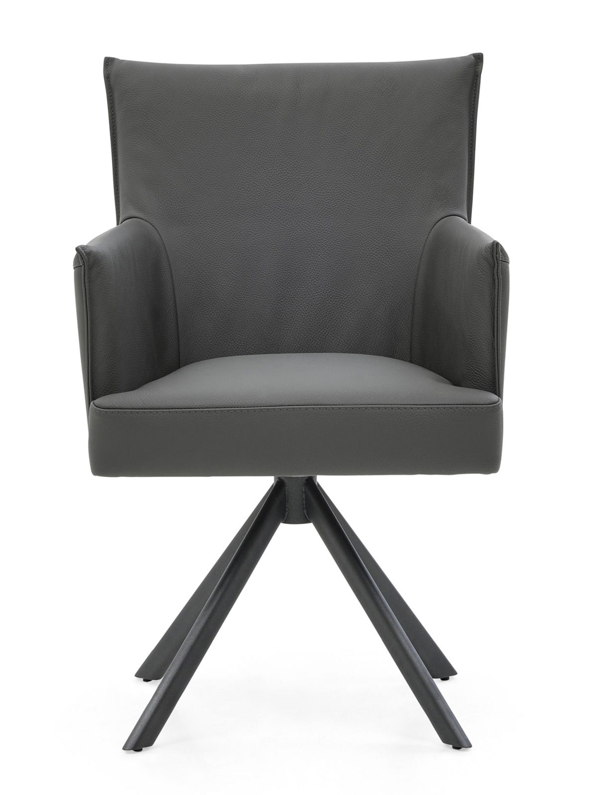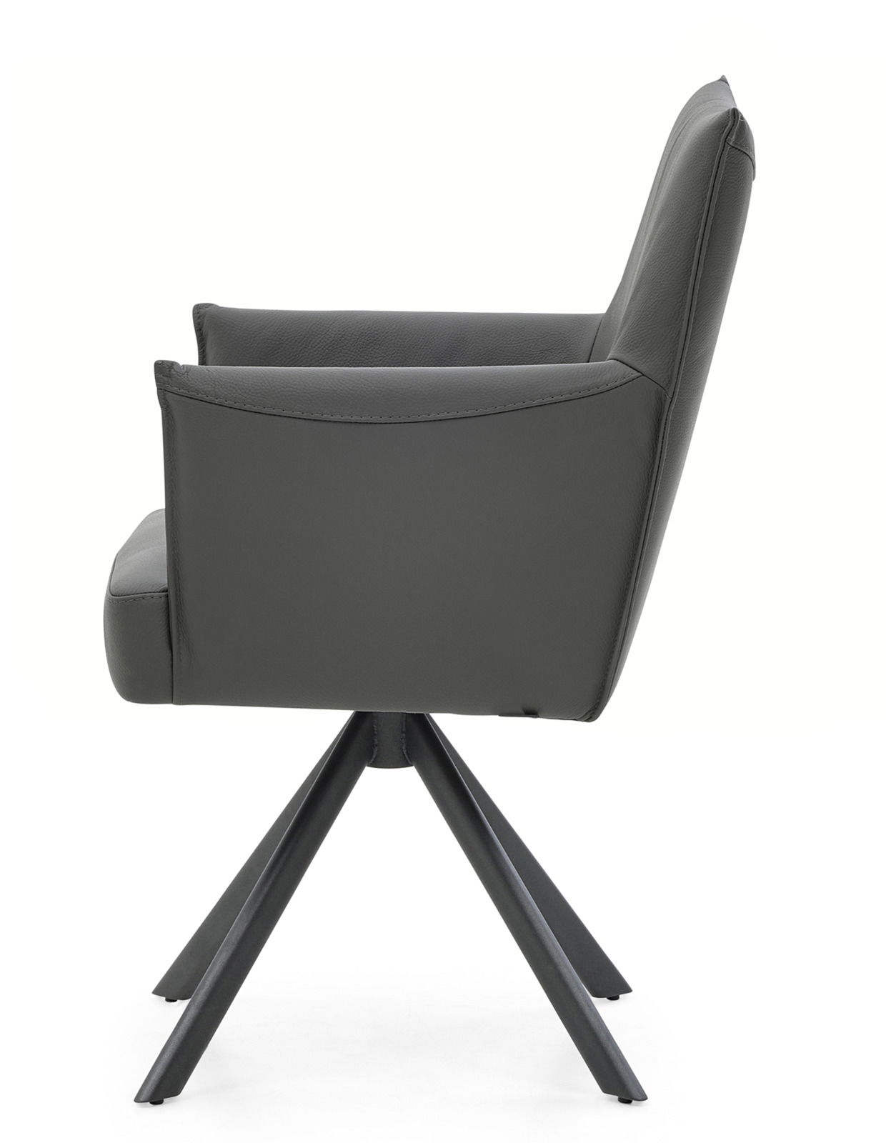 Der Musterring Armlehnstuhl MR NILAN beeindruckt durch sein modernes und trendiges Design, das sich perfekt in jedes zeitgemäße Wohnambiente einfügt. Mit seinem hochwertigen Lederbezug in der eleganten Farbe Granit strahlt dieser Stuhl eine zeitlose Eleganz aus. Die robusten Metallfüße in Anthrazit ergänzen das stilvolle Erscheinungsbild und sorgen für Stabilität. Der Stuhl bietet eine komfortable Sitzhöhe von 51 cm und eine Sitztiefe von 43,5 cm, die für ein angenehmes Sitzerlebnis sorgen. Auch wenn der Stuhl nicht drehbar oder höhenverstellbar ist, überzeugt er durch seine hochwertige Verarbeitung und das edle Material.