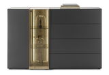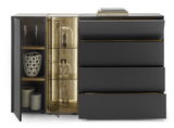 Das Highboard TREVIO ist ein absoluter Gewinn für alle Freunde hübscher Möblierung. Am Schubladenschrank befindet sich eine Drehtür, hinter der Ihr Hab und Gut untergebracht werden kann. Eine nützliche Soft-Close-Funktion sorgt für hohe Praktikabilität. Drei Schubkästen tragen dazu bei, Ihr Zuhause ordentlich zu halten. Die Kommode ist mit vier Böden versehen. Sämtliche Qualitäten und Highlights, die die Marke Musterring definieren, kommen in diesem Schubladenschrank zusammen. Das Möbel aus Holz und Sicherheitsglas ist in einem Birke-Farbton gehalten. Es hat ein Breitenmass von insgesamt 181 cm, eine Höhenabmessung von 119 cm sowie eine Tiefe von 41 cm. Das Modell TREVIO verfügt über ein Gewicht von 130 kg. Dieser Schubladenschrank lässt sich in unzählige verschiedene Raumkonzepte und Einrichtungsstile integrieren.