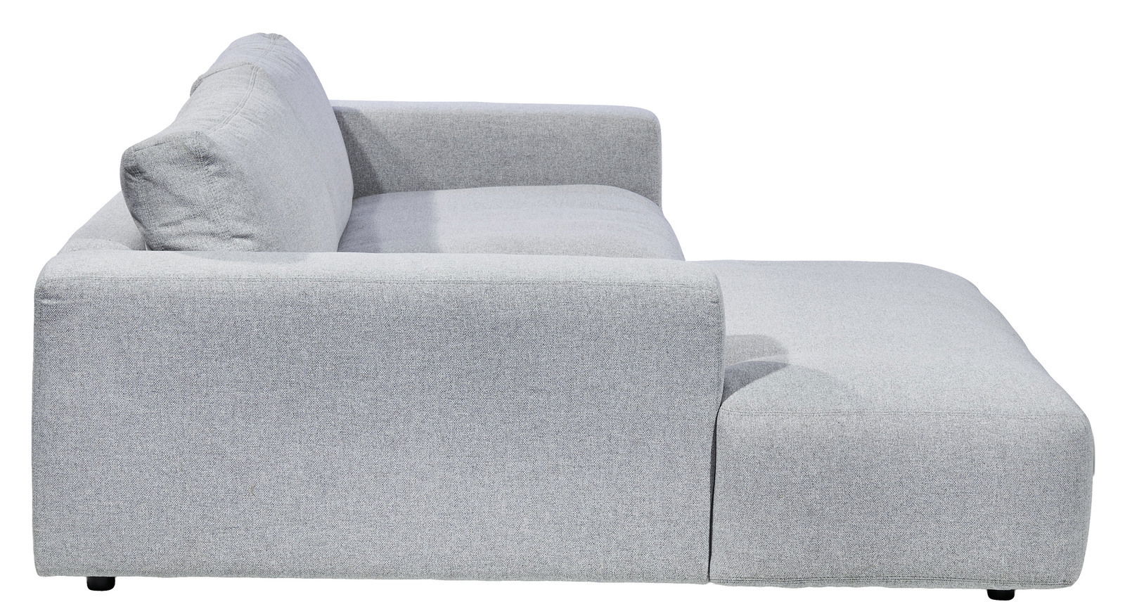 Erleben Sie luxuriösen Komfort und modernes Design mit der Musterring Longchairkombination MR LUCIA. Die Kombination besticht durch ihren eleganten Bezug aus Stoff Mono in einem hellen Grauton, der sich nahtlos in jedes zeitgemäße Interieur einfügt. Der Longchair bietet eine großzügige Sitztiefe von 81 cm und eine angenehme Sitzhöhe von 43 cm, die zum Entspannen einlädt. Dank der hochwertigen Verarbeitung und des echten Rückens ist die Kombination nicht nur optisch ansprechend, sondern auch funktional. Diese Longchairkombination besteht aus einem 1,5er Sofa mit Armteil rechts und einem großen Longchair mit Armteil links, jeweils mit einem Rückenkissen.