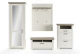 Den Musterring Schuhschrank "SET ONE YORK" fügen Sie der gleichnamigen Möbelserie im Eingangsbereich hinzu. Durch den Korpus im weißen Piniendekor und die Oberplatten-Absetzung sowie Rückwände in geschroppter Artisan-Eiche (3-D-Optik) ist er ein attraktives Landhausmöbel.