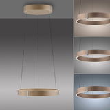 Die Neuhaus Pure LED-Pendelleuchte PURE E-CLIPSE vereint modernes Design mit funktionaler Beleuchtung. In der eleganten Hauptfarbe Bronze gehalten, fügt sich diese Leuchte nahtlos in jedes Interieur ein. Mit ihrer flexiblen Farbtemperatur von 2700 bis 5000K bietet sie sowohl warmes, gemütliches Licht als auch helles Tageslichtweiß. Dank der im Lieferumfang enthaltenen Fernbedienung lässt sich die Leuchte bequem steuern, um die perfekte Lichtstimmung zu erzeugen. Aus hochwertigem Aluminium gefertigt, überzeugt sie nicht nur optisch, sondern auch in puncto Langlebigkeit. Die leistungsstarken LED-Leuchtmittel sind bereits enthalten und bieten eine beeindruckende Helligkeit von 4800 Lumen.