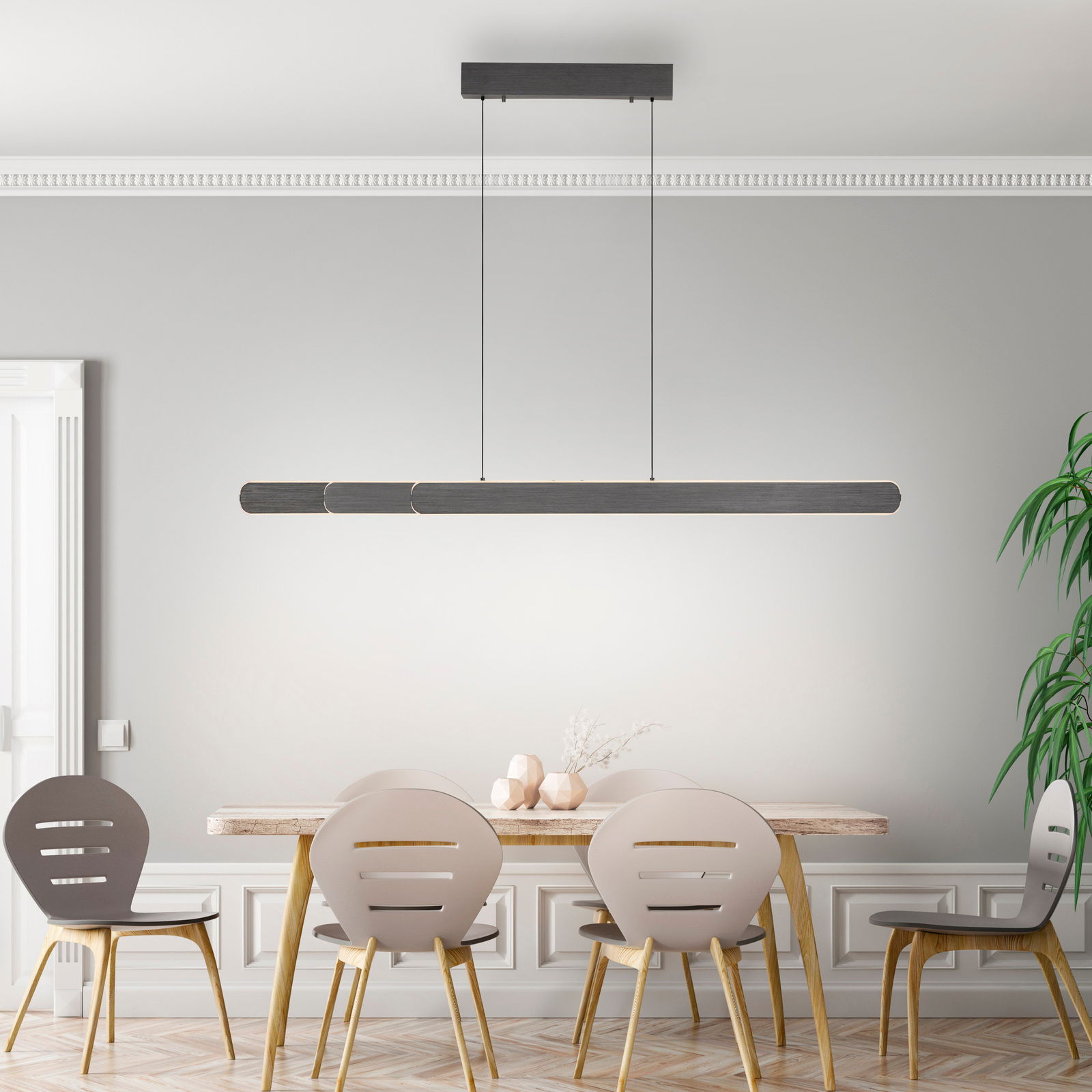 Insbesondere bei einem Einsatz der Hängeleuchte über dem Tisch ist es hilfreich, wenn die Leuchte höhenverstellbar ist. Seilzüge oder Kabel ermöglichen, die Höhe der Pendelleuchte zu variieren. Das wirkt sich direkt auf den Leuchtkreis aus, denn umso tiefer die Leuchte hängt, desto enger ist der Radius und desto heller wird die Fläche darunter ausgeleuchtet. Um die Helligkeit in ihrer Intensität bedarfsgerecht einzustellen, gibt es Dimmer. Sie sind oft bereits eingebaut, aber lassen sich auch nachrüsten. Beim Essen ist beispielsweise ein helles Licht gefragt. Beim Digestif danach darf es mit einem gedämpften Licht gemütlicher werden.