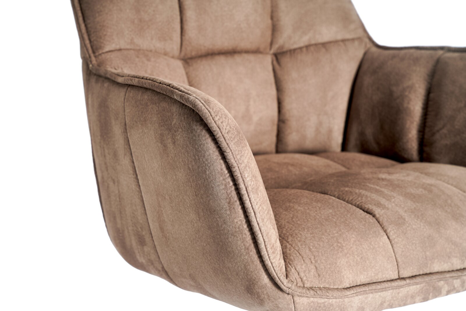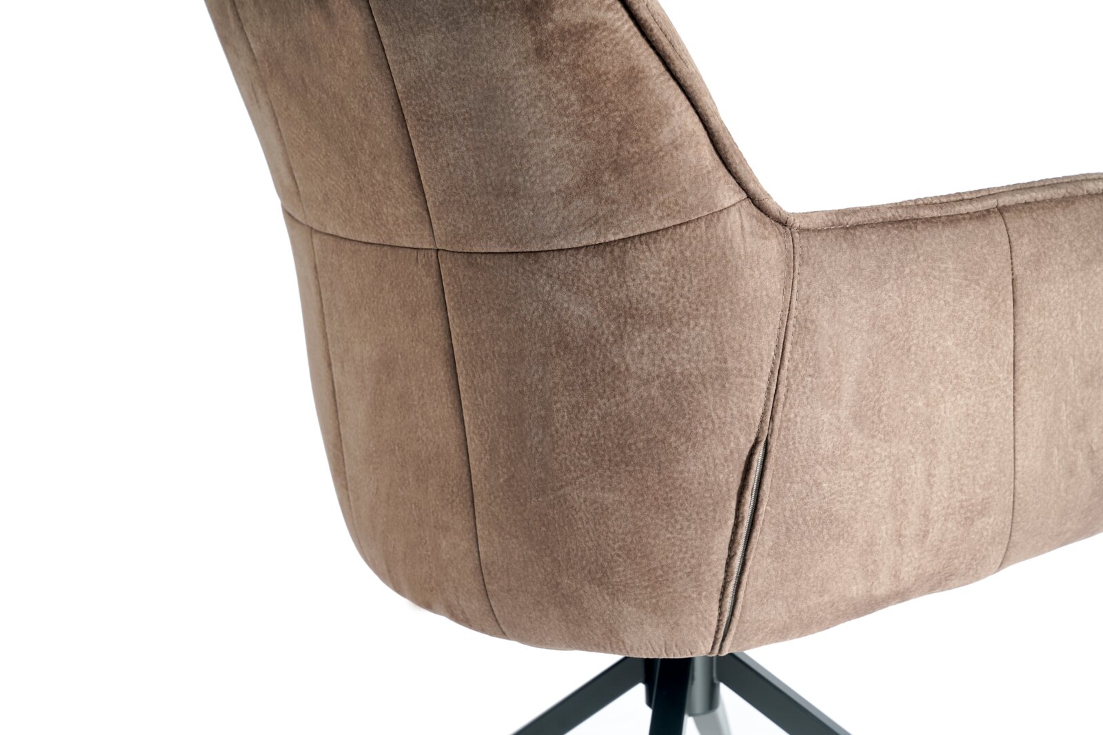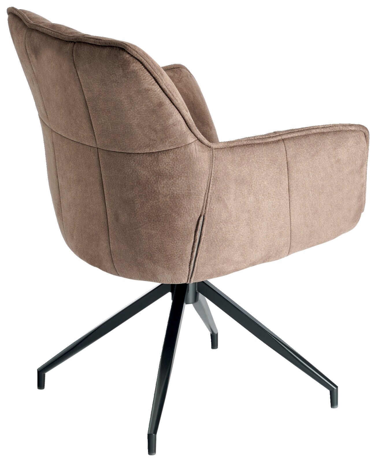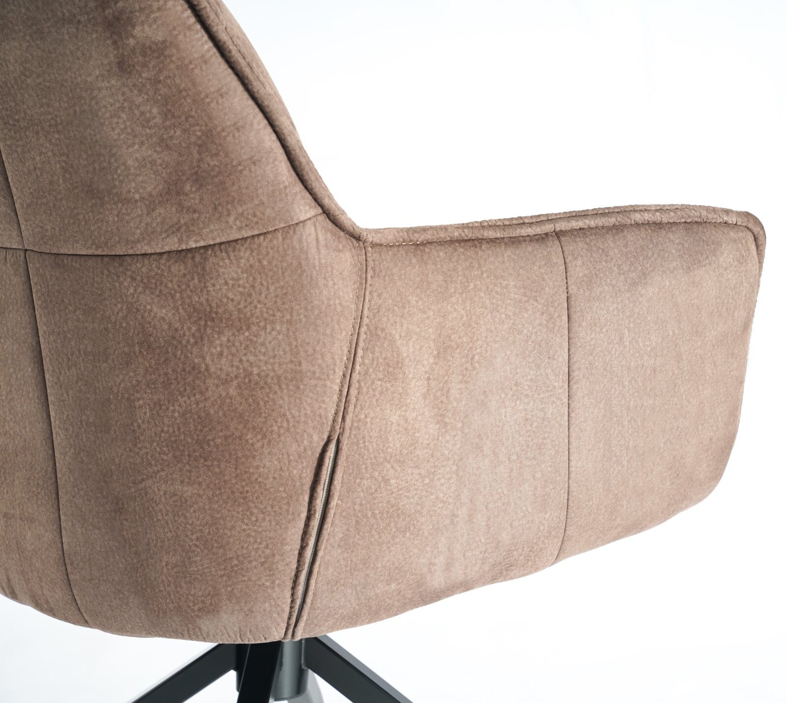 Erleben Sie den perfekten Mix aus modernem Design und hoher Funktionalität mit dem Novel Armlehnstuhl BUFFALO. Dieser trendige Stuhl besticht durch seinen hochwertigen Bezug in Buffalo fango, einer eleganten braungrauen Hauptfarbe, die jedem Raum eine edle Note verleiht. Das schwarz mattierte Metallgestell unterstreicht den modernen Stil und sorgt für Stabilität. Mit einer Sitzhöhe von 50 cm, einer Sitztiefe von 45 cm und einer Sitzbreite von 47 cm bietet der Stuhl optimalen Komfort. Die drehbare Funktion ermöglicht Flexibilität und Bewegungsfreiheit, während die robuste Konstruktion eine Belastbarkeit von bis zu 140 kg gewährleistet.