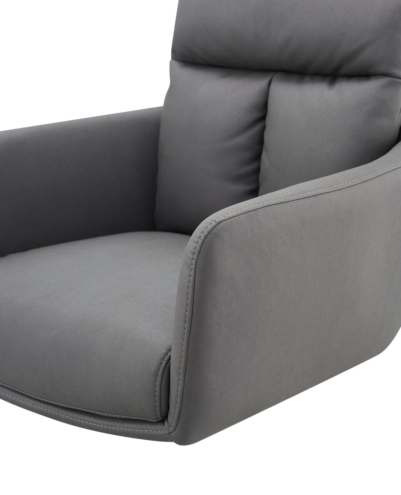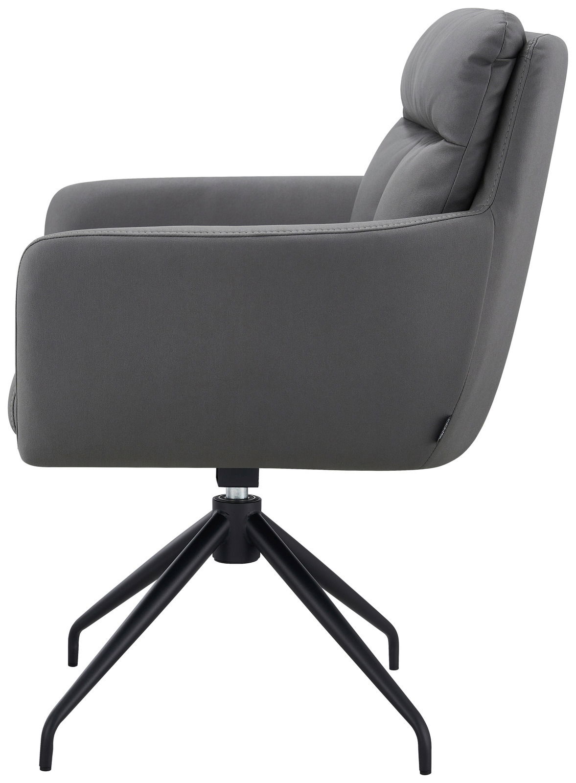 Novel Armlehnstuhl EMMA: Komfortable EleganzErleben Sie den Luxus des Novel Armlehnstuhls EMMA, dessen hochwertige Microfaser-Stoffqualität mit 20.000 Scheuertouren für Langlebigkeit und Pflegeleichtigkeit sorgt. Die Kombination aus grauem Stoff und schwarzem Metallfuß verleiht diesem Stuhl einen außergewöhnlichen Look, der sich ideal in moderne Wohnkonzepte einfügt. Die drehbare Sitzfläche ermöglicht eine einfache und bequeme Anpassung an Ihre Bedürfnisse, während die solide Konstruktion Stabilität und Sicherheit bietet. Gönnen Sie sich diesen stilvollen Armlehnstuhl und bereichern Sie Ihren Wohnraum mit einem Möbelstück, das Design und Funktionalität perfekt vereint. Bestellen Sie jetzt und erleben Sie Komfort neu!