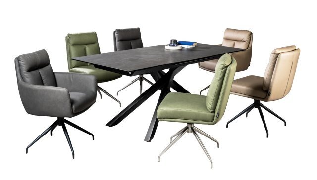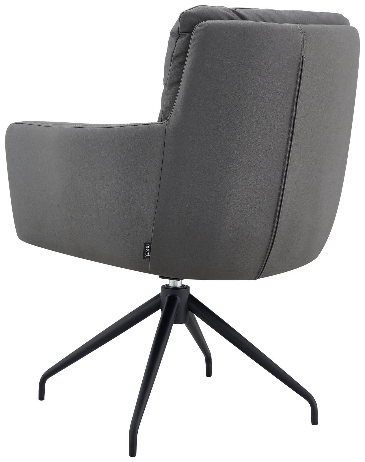Der Novel Armlehnstuhl EMMA vereint modernes Design mit erstklassigem Komfort und bringt einen Hauch von Eleganz in Ihr Zuhause. Der hochwertige Stoffbezug Vega in stilvollem Grau harmoniert perfekt mit dem schwarzen, pulverbeschichteten Metallgestell, das dem Stuhl eine zeitlose Ästhetik verleiht. Dank der praktischen Drehfunktion und der komfortablen Polsterung mit Federkern bietet dieser Stuhl sowohl Flexibilität als auch Bequemlichkeit. Mit einer Sitzhöhe von 50,5 cm, einer Sitztiefe von 43,5 cm und einer Sitzbreite von 46 cm wird ein optimaler Sitzkomfort gewährleistet. Die robusten Materialien versprechen eine Belastbarkeit von bis zu 140 kg.