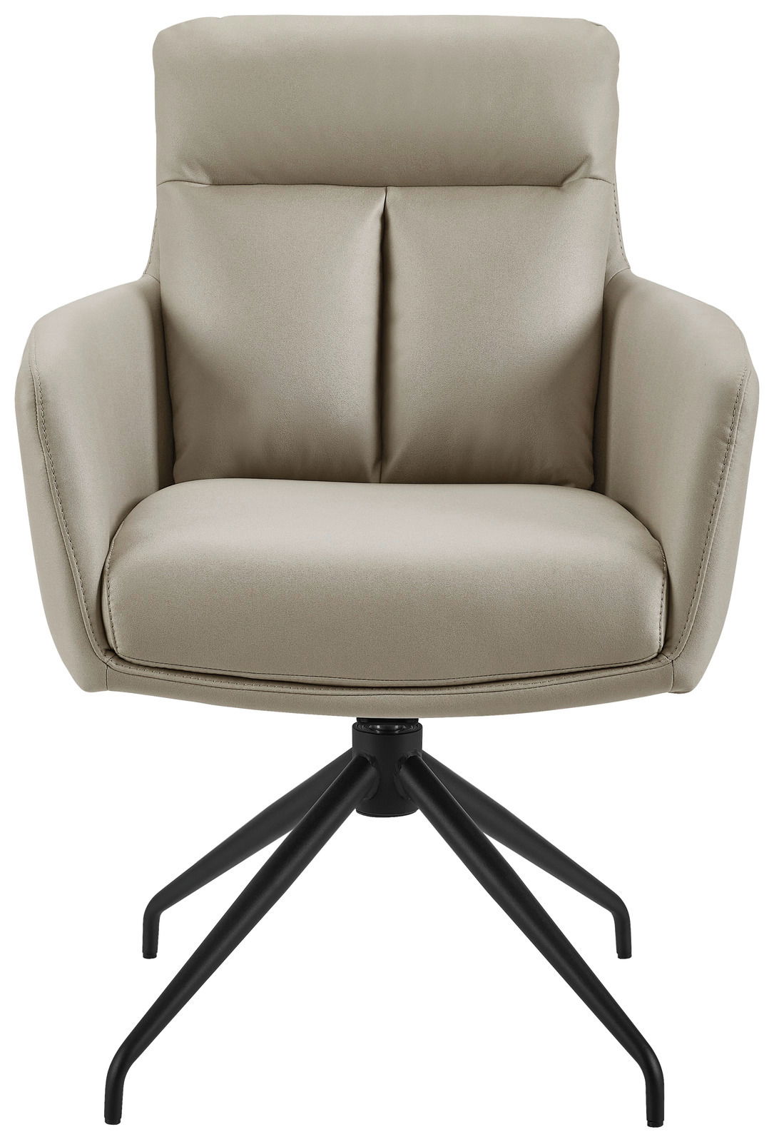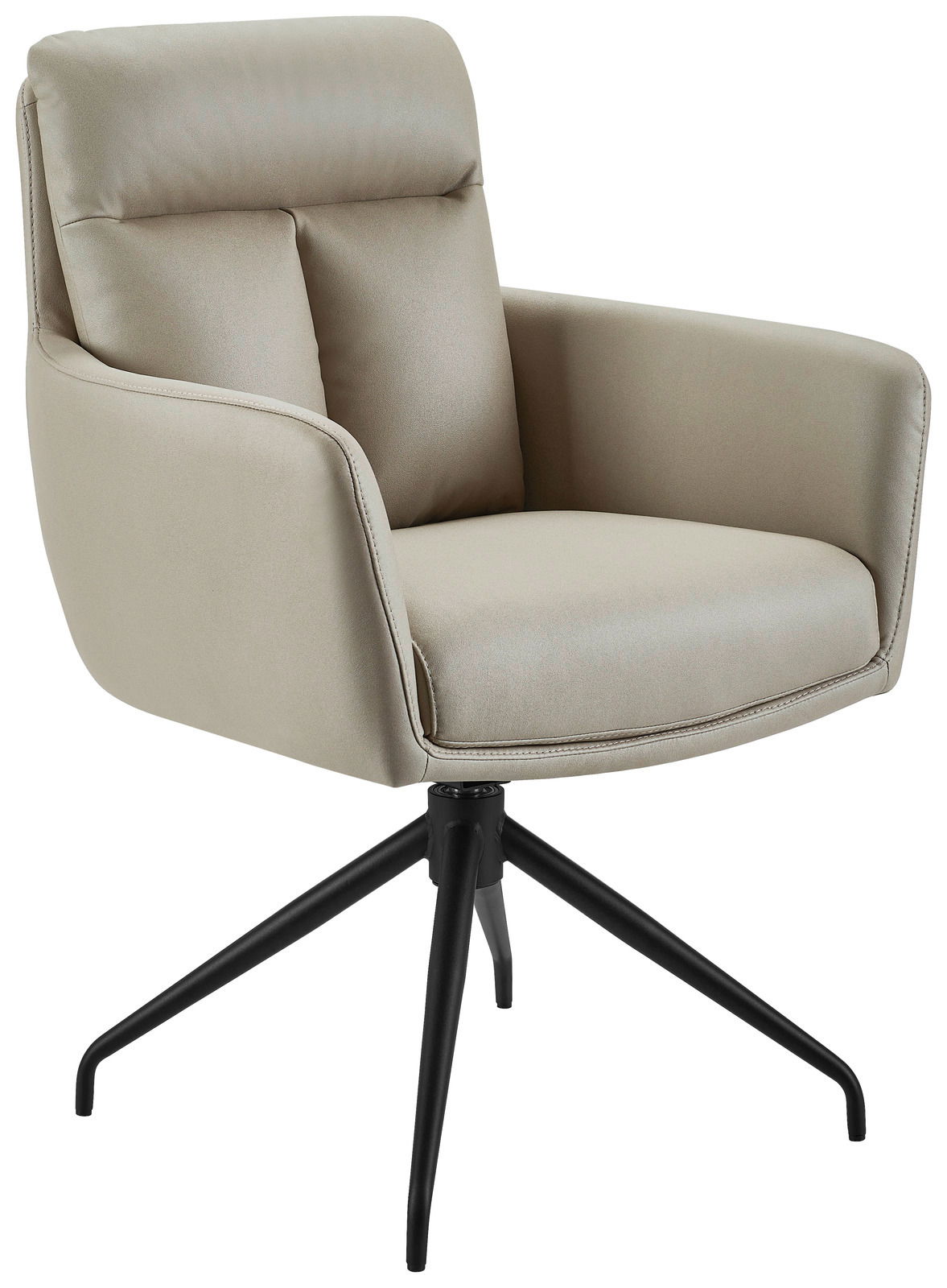 Der Novel Armlehnstuhl EMMA verkörpert modernes Design mit einem Hauch von Eleganz. Sein Stoffbezug in der Farbe Vega taupe harmoniert perfekt mit dem pulverbeschichteten schwarzen Metallgestell, das Stabilität und Stil bietet. Mit einer Sitzhöhe von 50,5 cm und einer Sitztiefe von 43,5 cm garantiert dieser Stuhl optimalen Komfort. Er ist drehbar und somit ideal für flexible Einsatzmöglichkeiten in Ihrem Wohnbereich. Die Sitzbreite von 46 cm und die hohe Belastbarkeit von bis zu 140 kg sorgen für eine lange Lebensdauer. Der hochwertige Microfaserbezug überzeugt mit 20.000 Scheuertouren und bietet eine angenehme Haptik.