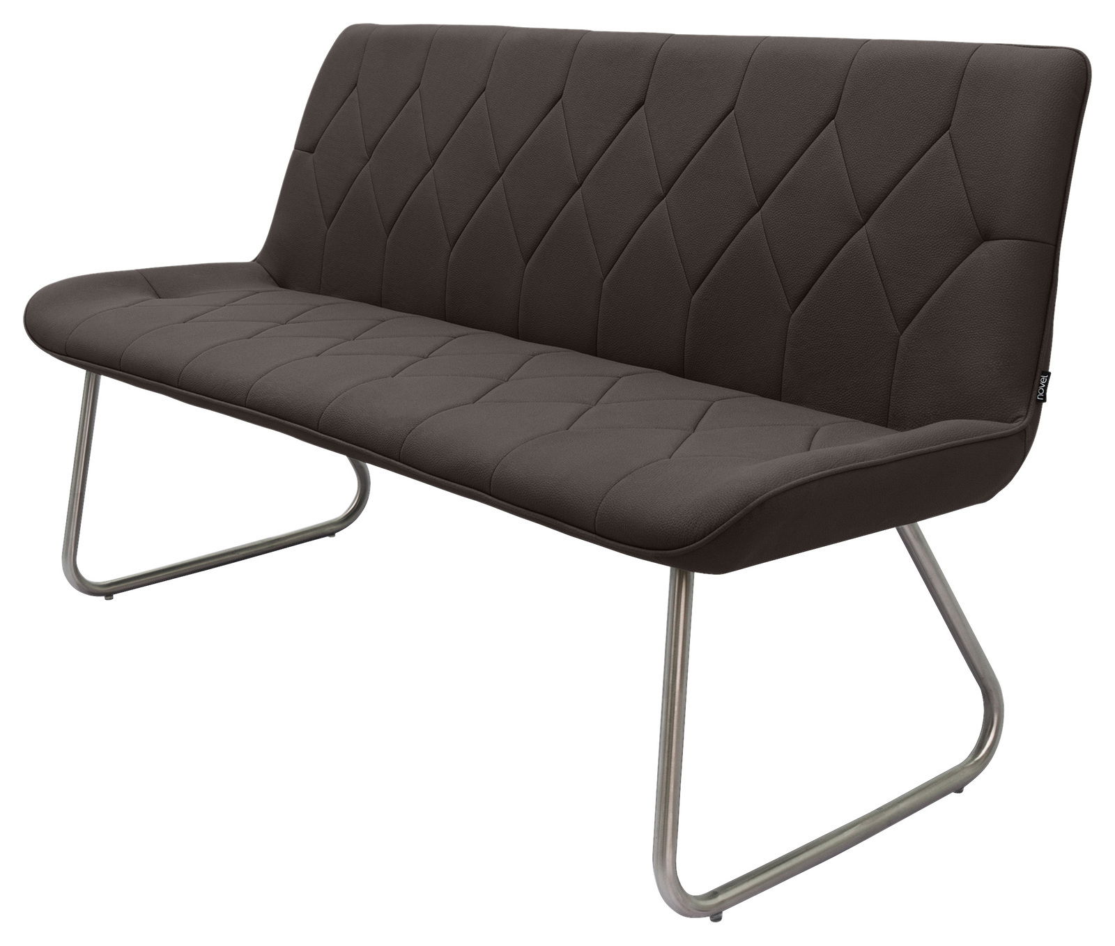 Zu jedem räumlichen Farbklima erzielt die Novel Bank "HENRY" einen raffinierten Kontrast. Ihr schwarzer Mikrofaserbezug mit attraktiver Rautensteppung verleiht der puristischen Formsprache einen heimeligen Akzent. Mattsilberne gebürstete Edelstahlkufen sorgen für stylishe Eleganz.