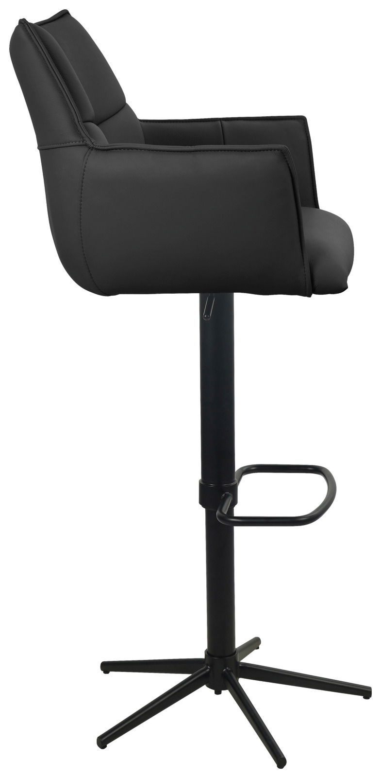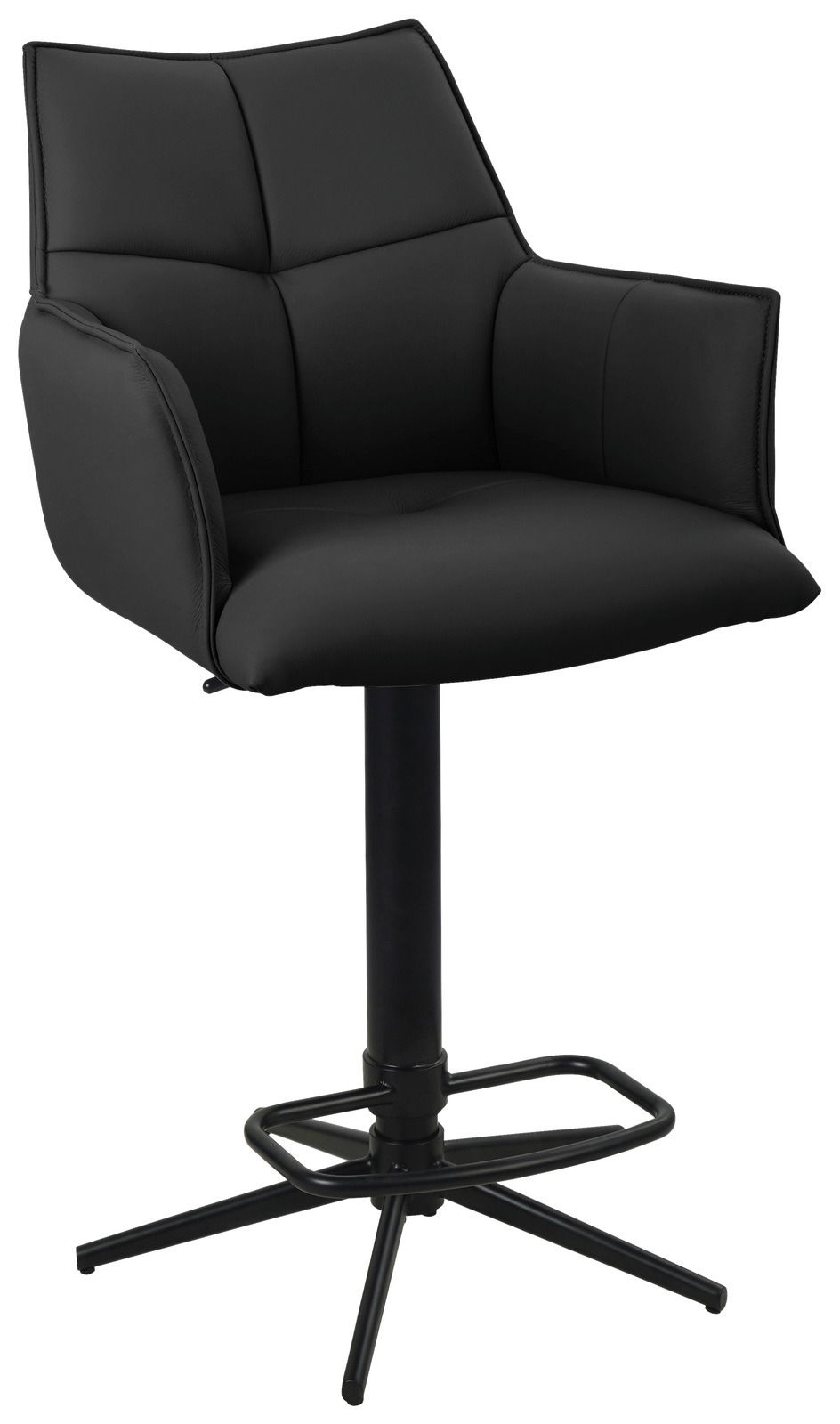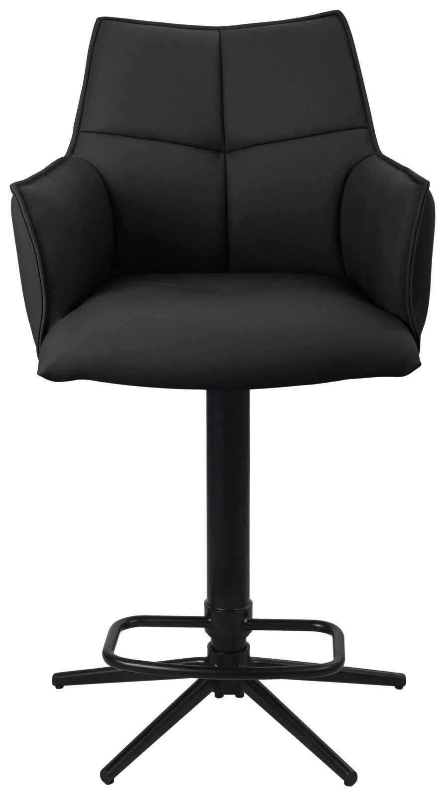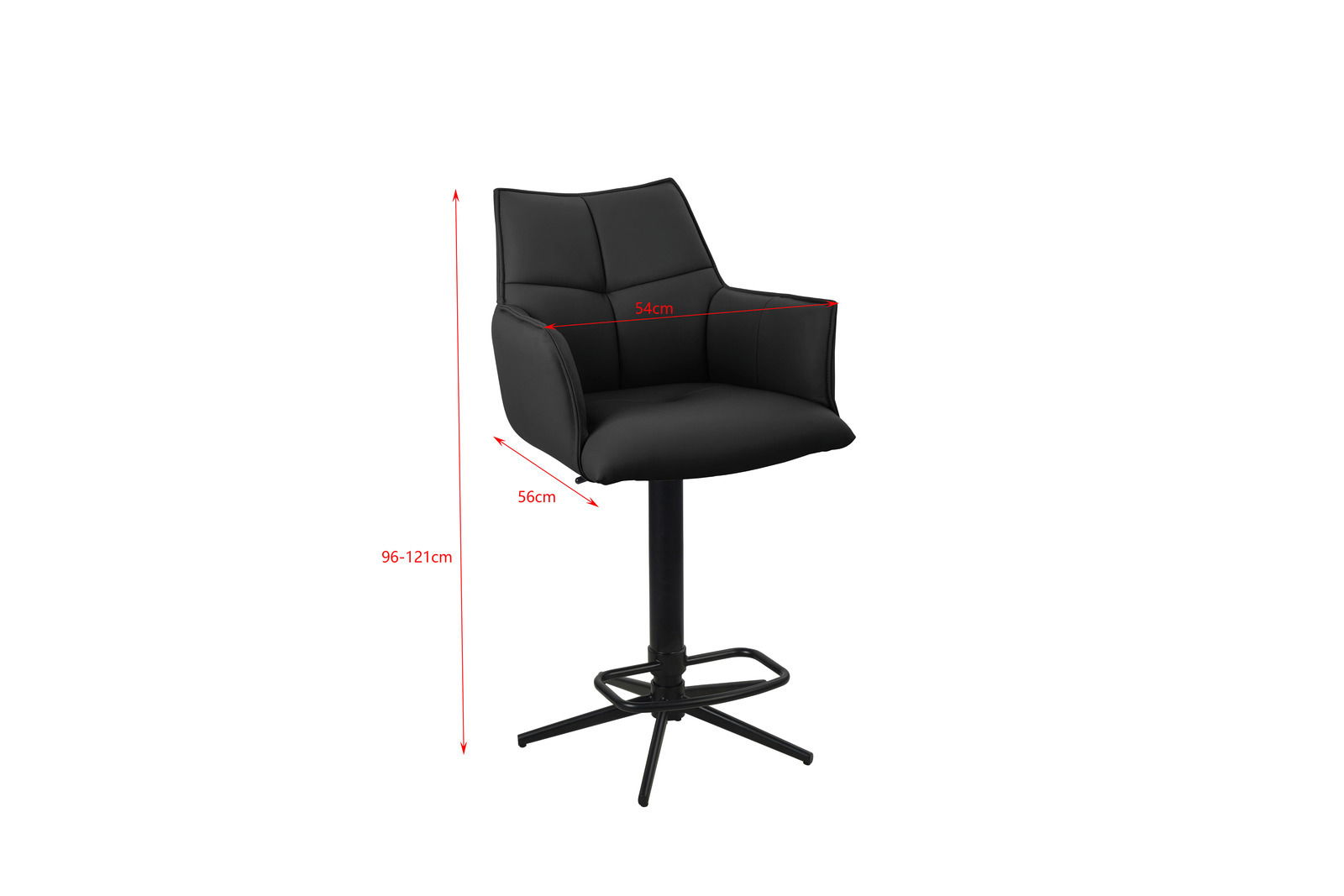 Entdecken Sie den Novel Barstuhl MIAMI, der modernen Stil mit trendigem Design vereint. Mit seinem eleganten schwarzen Lederbezug und dem robusten, schwarz pulverbeschichteten Metallgestell setzt dieser Barstuhl in jedem Raum stilvolle Akzente. Die drehbare Sitzfläche bietet eine komfortable Sitztiefe von 40 cm und eine großzügige Sitzbreite von 44 cm, was höchsten Sitzkomfort gewährleistet. Die zeitlose schwarze Farbgestaltung passt zu verschiedensten Einrichtungsstilen und schafft ein harmonisches Ambiente. Der Barstuhl ist nicht nur optisch ansprechend, sondern auch funktional, da er höhenverstellbar ist und eine Belastbarkeit von bis zu 120 kg bietet.