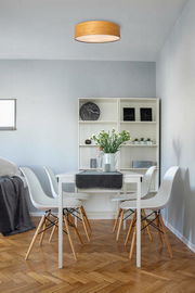 Die Novel Deckenleuchte beeindruckt mit ihrem minimalistischen und natürlichen Design, das sich harmonisch in jede Umgebung einfügt. Die Hauptfarbe Natur verleiht der Leuchte einen zeitlosen und eleganten Look, während das Hauptmaterial Thermoplast für Langlebigkeit und Stabilität sorgt. Diese Leuchte ist für den Netzbetrieb ausgelegt und bietet eine Nennleistung von 40 W. Obwohl sie ohne Leuchtmittel geliefert wird, ist sie kompatibel mit 3 x E27 LED-Leuchtmitteln, die maximal 40 W leisten. Die Möglichkeit, die Leuchtmittel zu tauschen, macht diese Deckenleuchte zu einer praktischen und zukunftssicheren Wahl für jedes Zuhause.